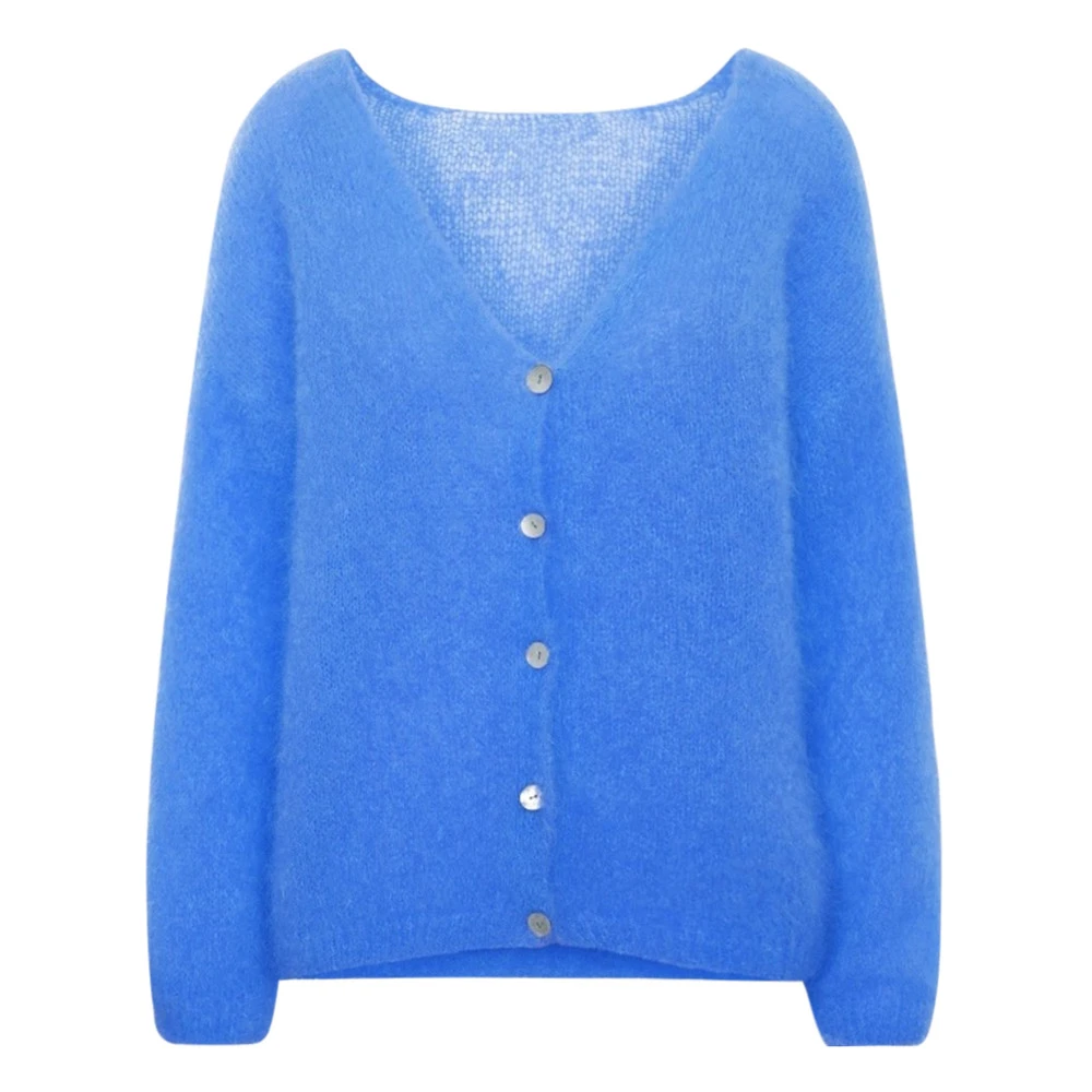 Cornelia Ls Cardigan fra Americandreams. Cardigan i deilig mohairstrikk, designet med kjærlighet i København og laget med omtanke rundt alle detaljer i Italia. Cornelia Ls Cardigan er strikket i en lett og luftig mohairmiks – som gjør den til den perfekte sommerstrikken! Cardiganen har løse ermer med ribbestrikkede mansjetter, dyp V-hals og knappestolpe i front. Vi elsker denne freshe fargen, og bruker den til alle vårens og sommerens antrekk. Bruk den gjerne over en kjole på kjølige sommernetter. Løse ermer Dyp v-hals Knappestolpe i front Mohairmiks Materiale: 78% mohair, 18% polyamid, 4% ullOm merketAmericandreams er et dansk merke som ble startet i 2012 med mål om å alltid tilby de nyeste trendene på markedet. Merkets misjon er å lage deilig strikk av god kvalitet til rettferdige priser. Plaggenes enkle, men trendy uttrykk gjør at de enkelt kan kombineres med hverandre, samt andre klær du måtte ha i garderoben fra før av.Klærne kjennetegnes ved at de er løstsittende og komfortable, samtidig som de er trendy og moderne, uten å bli for prangende eller ultramoderne. Tar du godt vare på plaggene, kan de derfor fint brukes sesong etter sesong og til alle årstider.