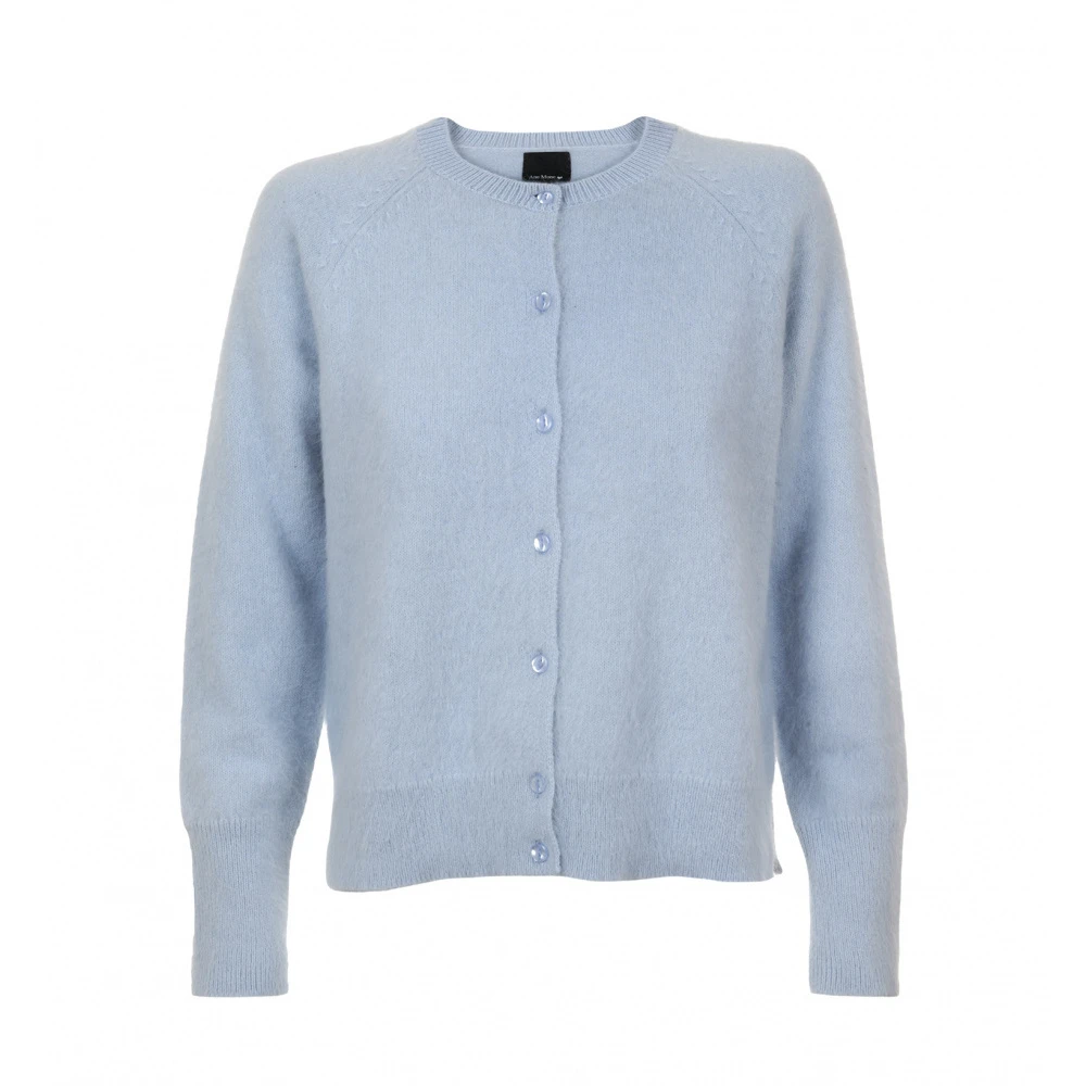Lekker angoracardigan fra Ane Mone i fargen Light Blue. Normal passform, lengde til hoften, med lange ermer. 70% angora, 30% nylon.