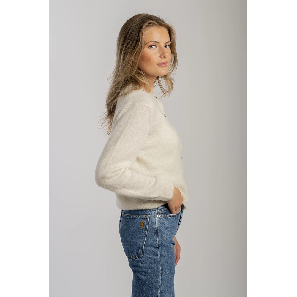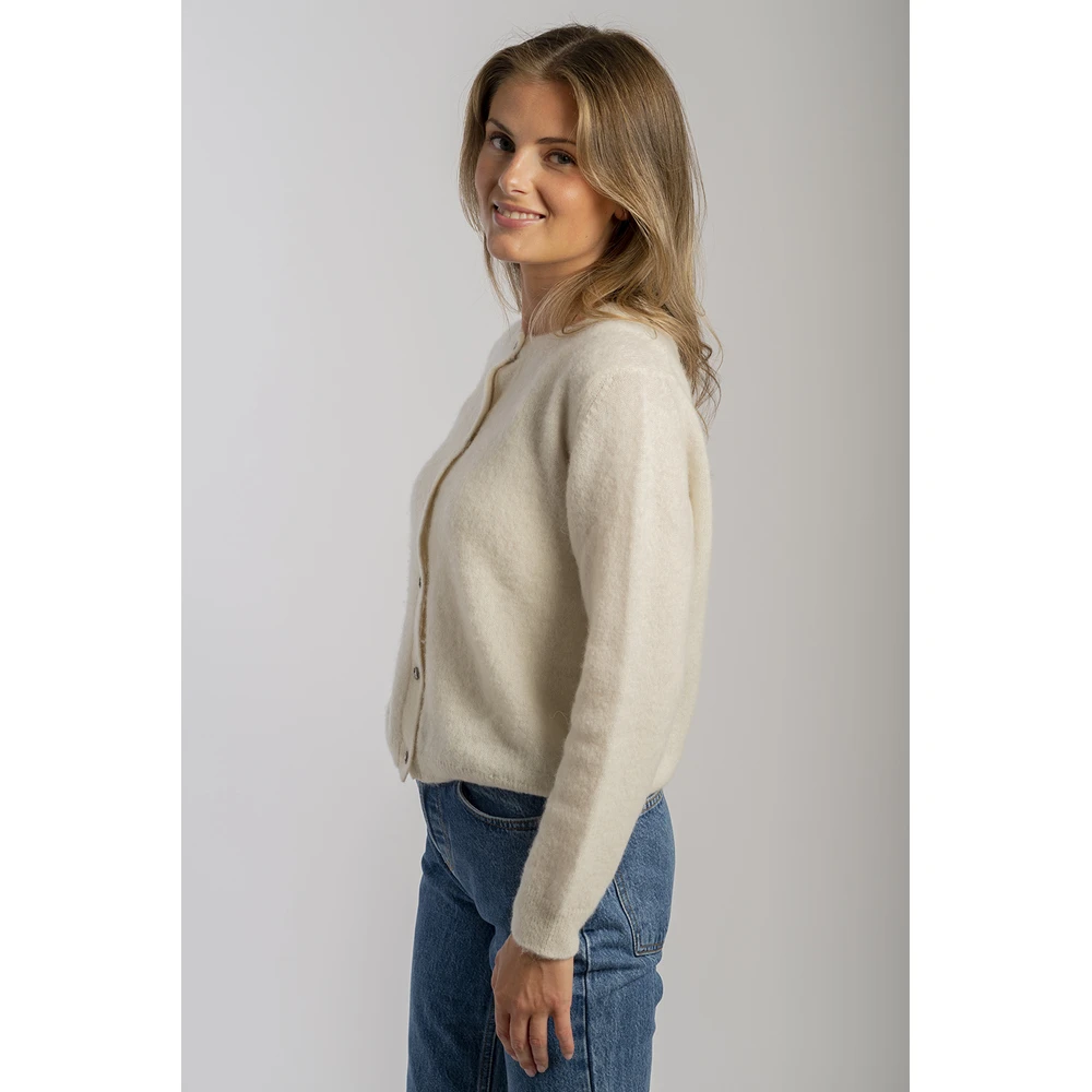 Arnie Says – Francis Stilren cardigan i en myk og delikat ullblanding. Modellen er utsmykket med knapper og ribbestrikket hem, mansjetter og hals. Nett i fasongen. 50% Alpakka 22% Ren Ull 28% Polyamid