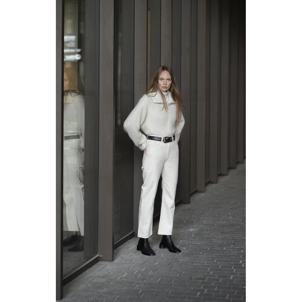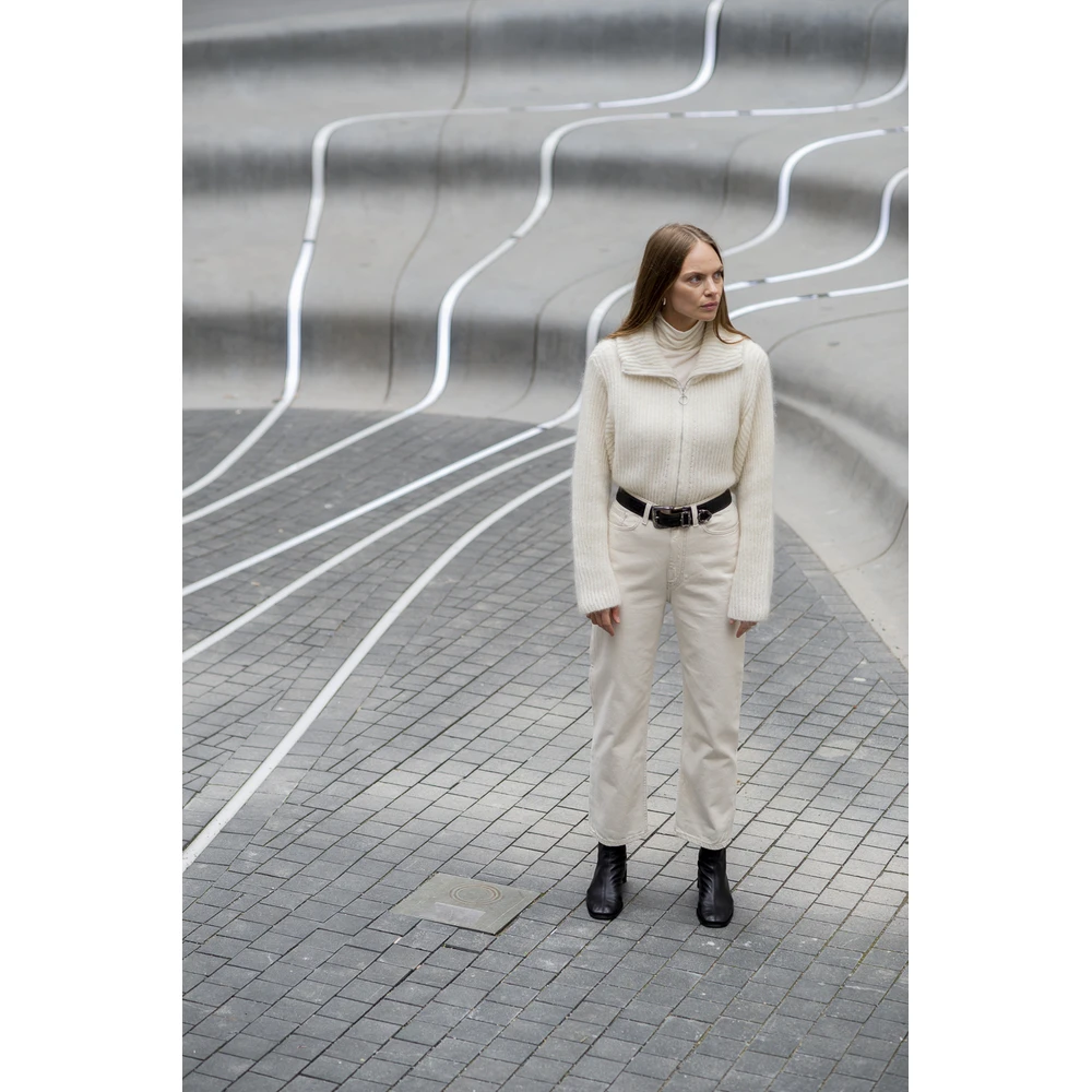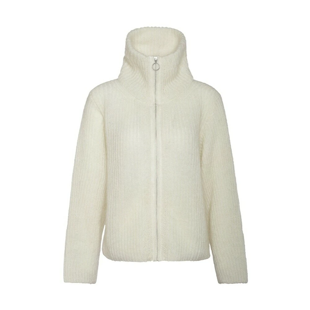 Arnie Says – Jones Stilren ribbestrikket cardigan i en fuzzy og myk mohair blanding. Modellen er designet med glidelås, høy hals og nedfalne skuldre. Rett i fasongen. 50% Mohair 50% Polyamide