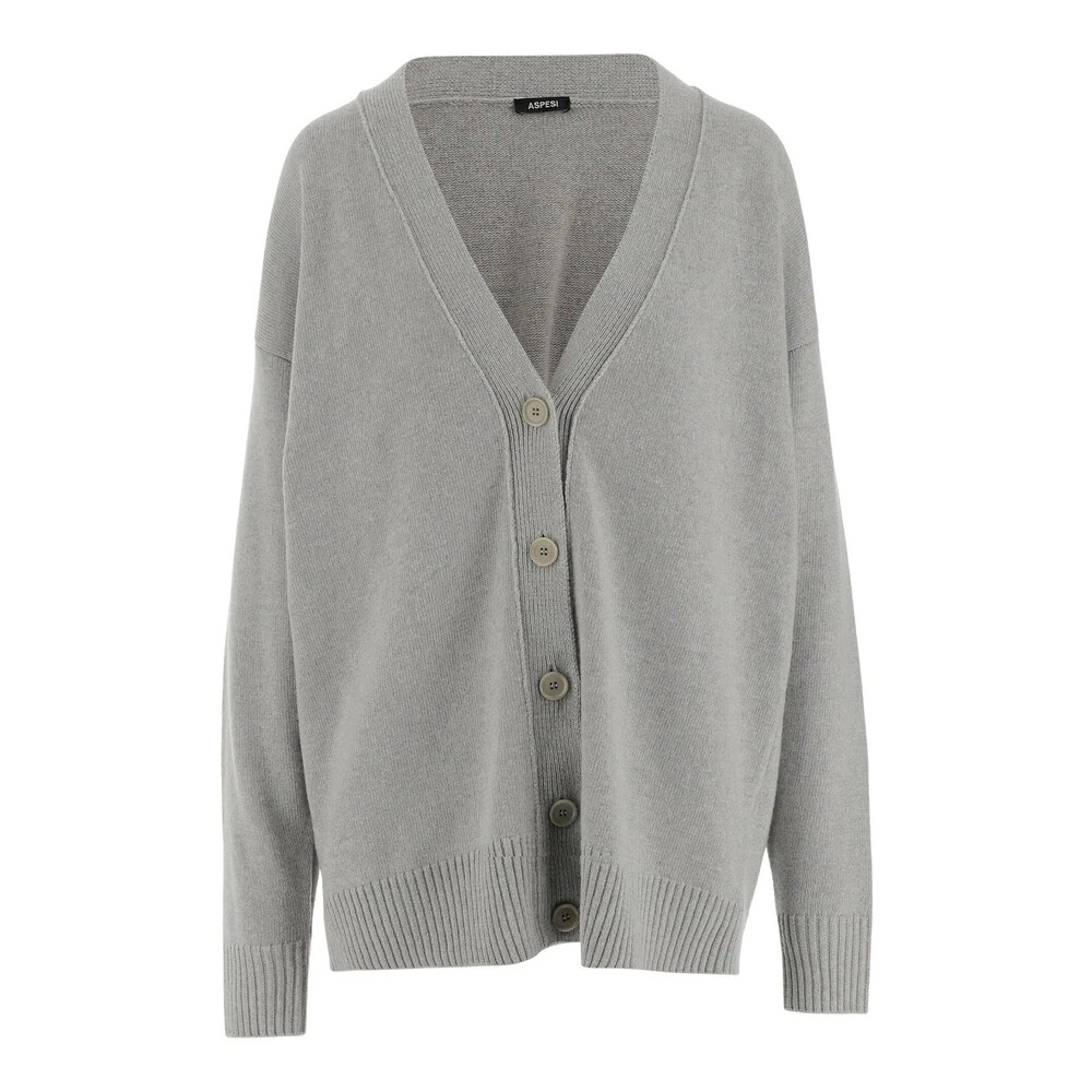 Cardigan laget av ren ull V-hals lange ermer Frontknapp lukking Ribbet kanter Løs passform Grå laget i Italia Sammensetning: 100% ull cardigan laget av ren ull V-hals Lange ermer Frontknapp lukking Ribbet kanter Løs passform Grå laget i Italia Sammensetning: 100 % ull
