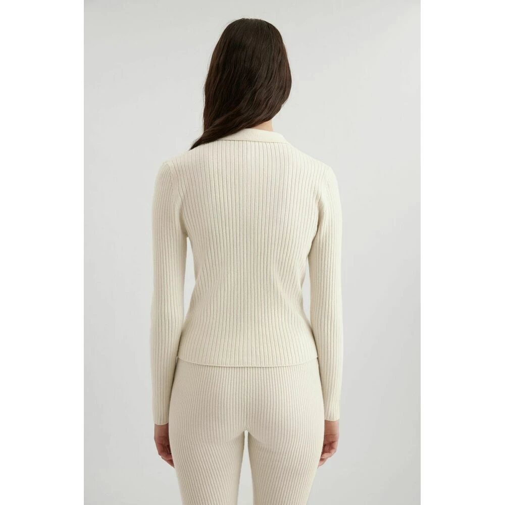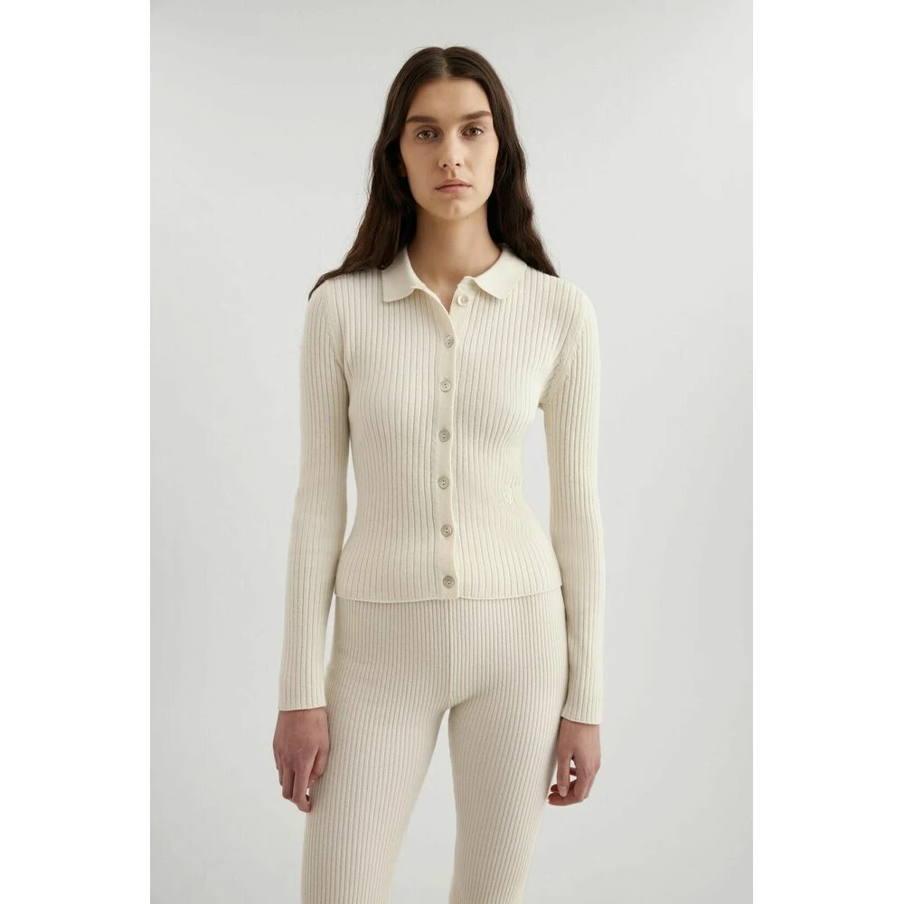 Signature Cardigan presenterer en feminin silhuett laget av et førsteklasses ullblandingsmateriale med en ribbet struktur. Cardiganen med knapper kommer med skallimiterte knapper og et tonalt A-broderi foran. Eugenia er 179 cm og har på seg størrelse S.
