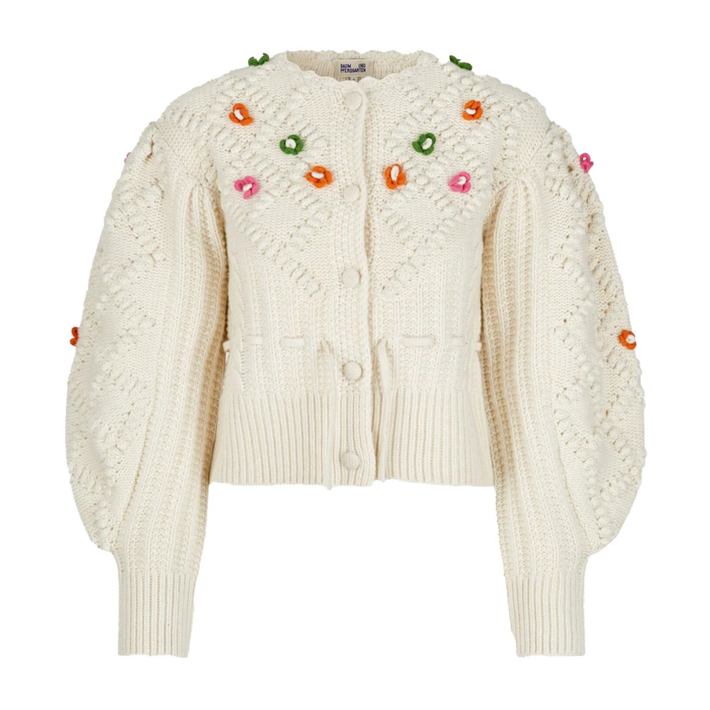 Denne tykke strikkede cardigan har stoffdekket knapper og et tynt trekkbelte. Det er svak ballong i ermene, i tillegg til å ribbe i hemmen og håndleddene. – Regelmessig passform- laget av en ullblandingsmaterialmain fabric80% ull20% polyamid