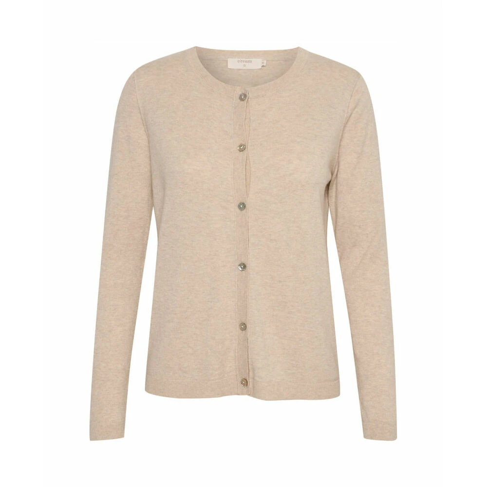 Anva er en nydelig strikket Cardigan fra Cream i fargen Beige. Den har rund hals . Finnes i flere farger Lengde i st. M: ca. 59 cm. Innhold: 80% bomull, 20% Cashmere Vask: 30*