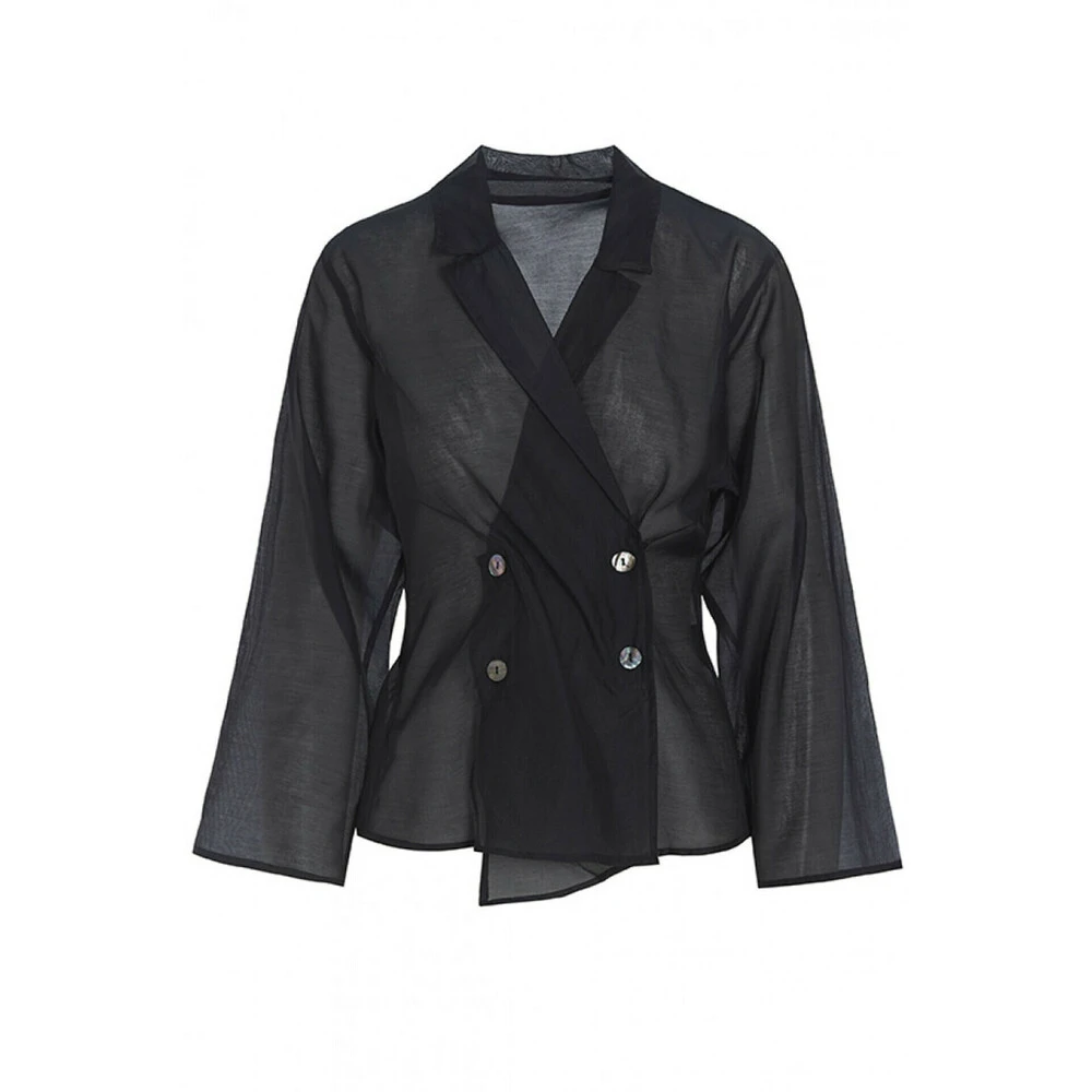 MERK! Ekstern lagring. Levering kan forlenges med 1-2 dager hvis varen ikke finnes i butikken vår akkurat nå. Kort skjorte med snu-rundt effekt som er lukket sammen med knapper. Skjorten har sammenleggbar krage, så vel som brede ermer som gir et moderne utseende. Skjorten er laget av en blanding av bomull og silke som gir et elegant og klassisk utseende. Skjorten kan brukes med klassiske vanebukser eller et par shorts til sommeren. · Fit: ALM · Modell: Ginwashi Silk Blend Shirt Bluses 223-2297-3802 Svart · Kvalitet: 65% bomull, 35% silke