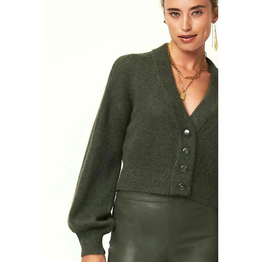 Diversifiser ditt strikkevarer med Jessy Vest i Vetiver Green, laget av en luksus Alpaca ullblanding med den mykeste berøringen. Det har senket skuldre som faller i en trekkraft rundt håndleddet. Vesten har en V-hals og knapper på forsiden i samme farge. Match din med skinnbukser i samme farge for et ton-sur-ton-utseende.