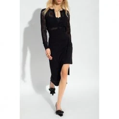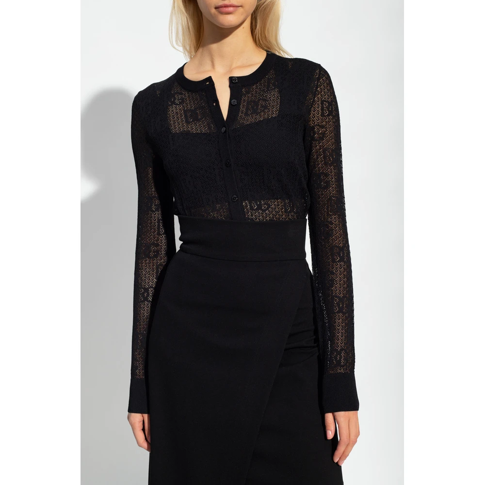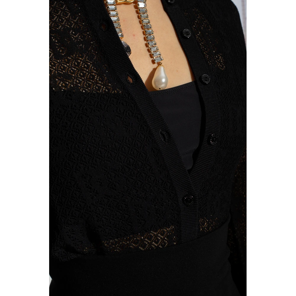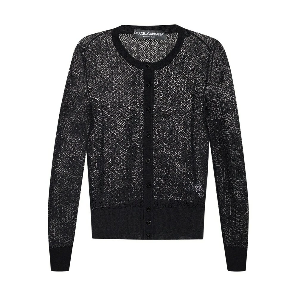Black Sheer Cardigan fra Dolce & Gabbana. Denne lange ermet designet er festet med knapper, og har et rundt nakke og monogrammønster.