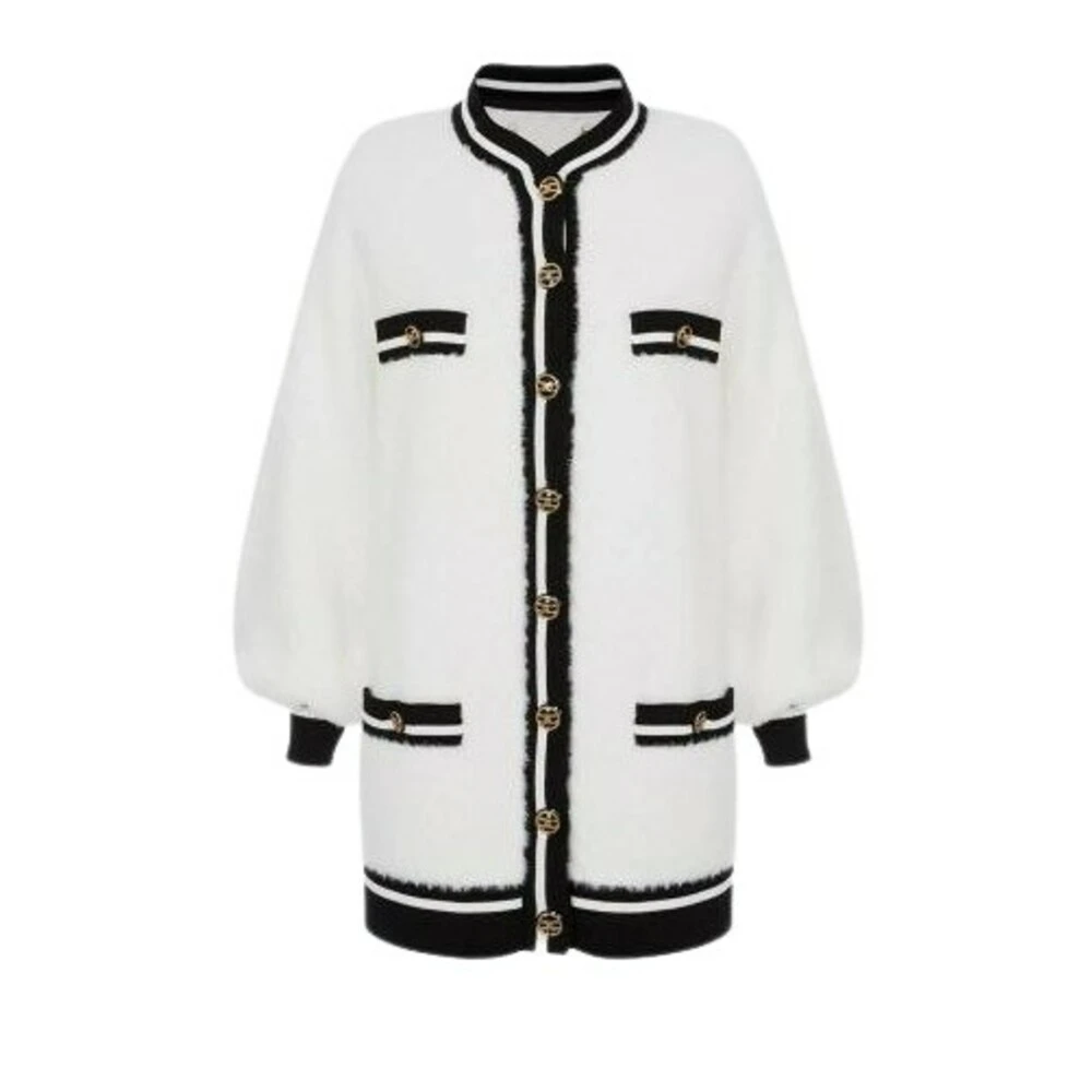 Elisabetta franchi Coats elfenben strikket frakk med kontrasterende grenser – Elisabetta franchi