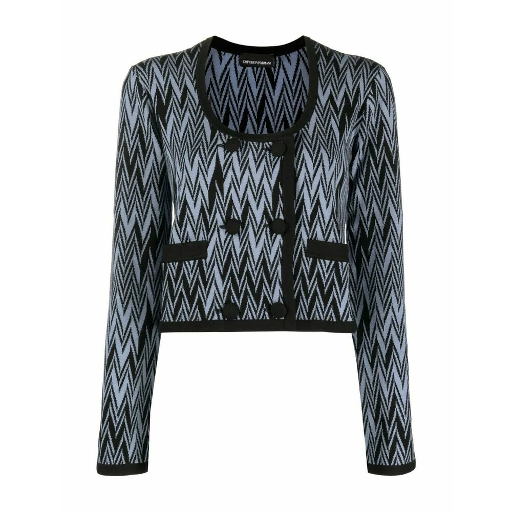 Emporio Armani-jakker svart beskåret dobbeltbrystet cardigan fra Emporio Armani med svart, blå, rund nakke, frontknappfesting, beskåret og lange ermer.