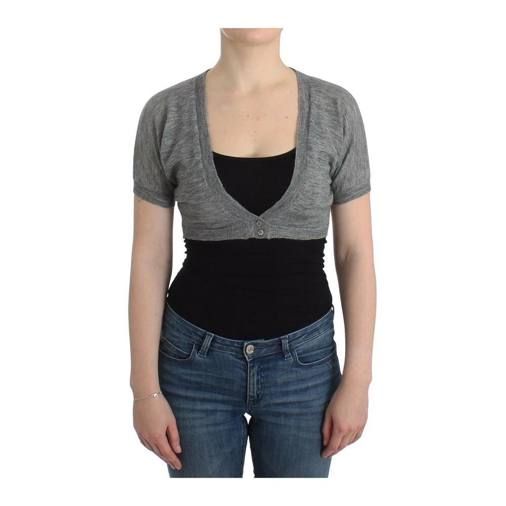 Ermanno Scervino genser nydelig helt nytt med tagger, 100% autentisk Ermanno Scervino undertøy Bolero. Farge: Grå modell: Bolero Button Closure Logo Inails