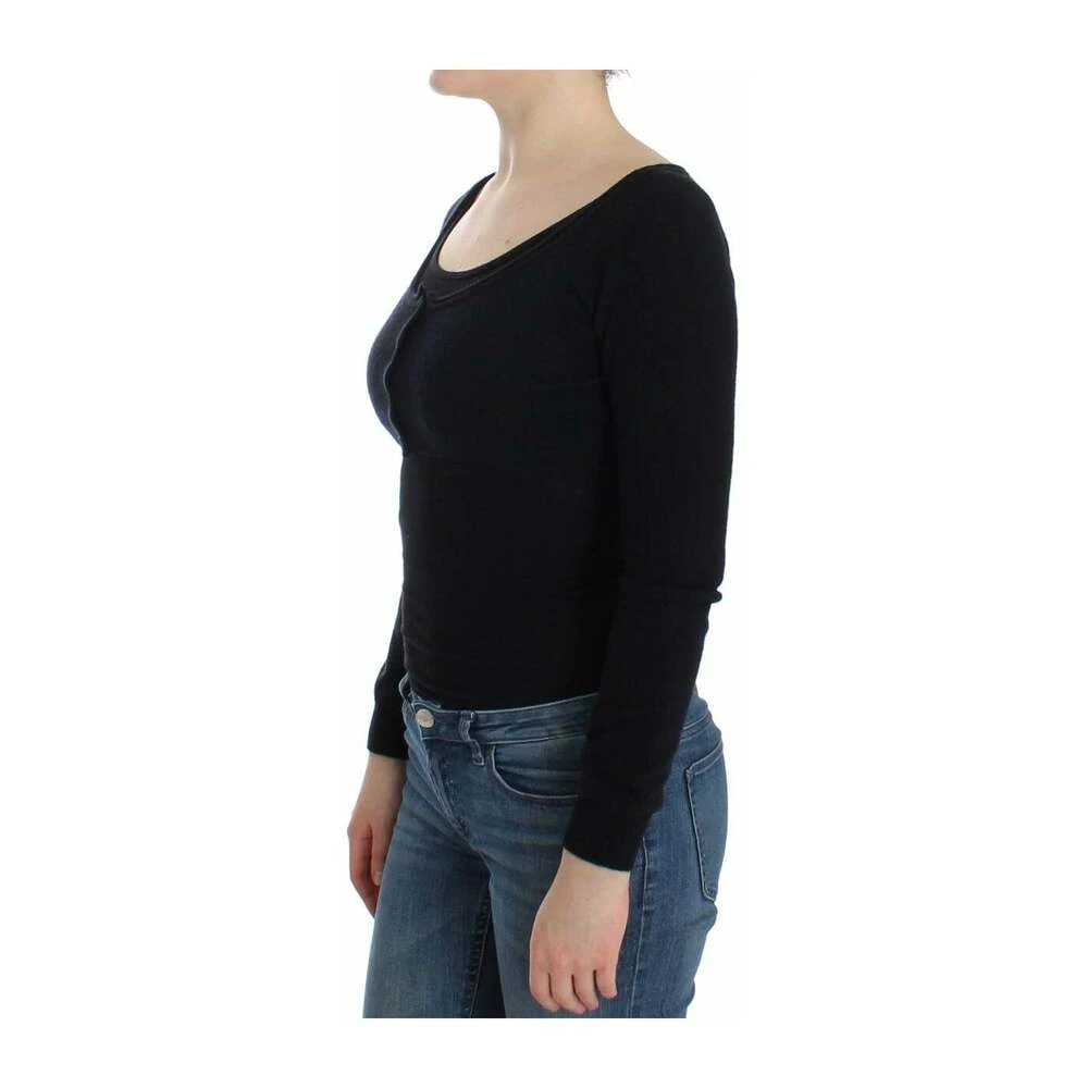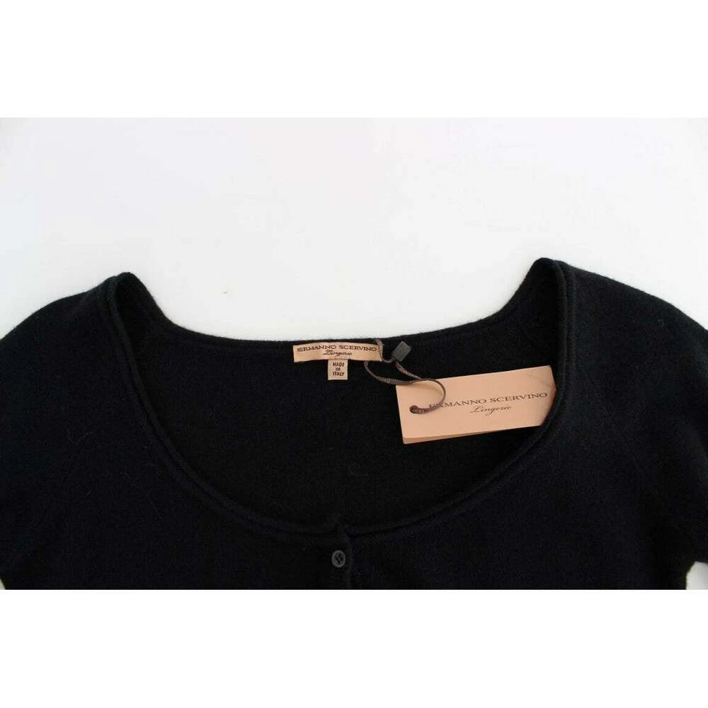 Ermanno Scervino genser nydelig helt nytt med tagger, 100% autentisk Ermanno Scervino undertøy svart ull og kashmir beskjæret genser. Materiale: 70% ull, 30% kashmir Farge: Svart modell: beskjæret genserknapplukking Logo Detaljer laget i Italia