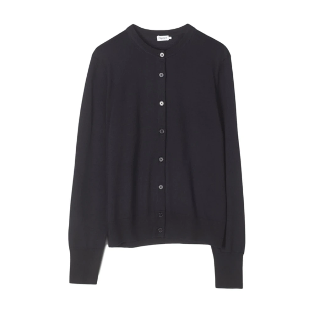 Merino short cardigan fra Filippa K i 100% merino ull. Klassisk modell som er like fin til bukser, skjørt som over en kjole. Farge: black Passform: Hoftelengde, knepping i front