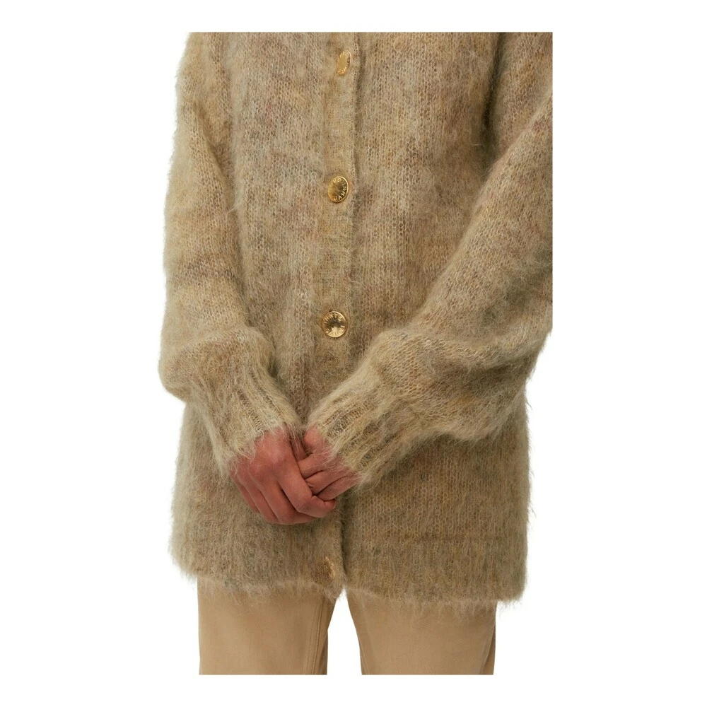 Brushed Mohair Cardigan er laget av 70 % kid mohair. Cardigan har rund hals, gullfarget knappelukking, ribbete kanter og en børstet effekt. Designet for en rett passform Vanlig i størrelsen, velg den vanlige størrelsen din Lett, myk strikk i ull- og polyblanding Modellen er 173 cm høy og bruker størrelse XS 70 % kid mohair, 25 % polyamide, 5 % wool Knappelukking Produseret i: China Produkt ID: K1780