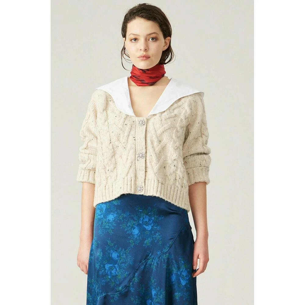 Avslappet avkortet cardigan i tykk ull-alpakkablanding, avsluttet med en knappestolpe og bølget bomullspoplinkrage. Materiale: 100% ull Produktstil ID: K1564 Denne beskrivelsen har blitt oversatt automatisk.