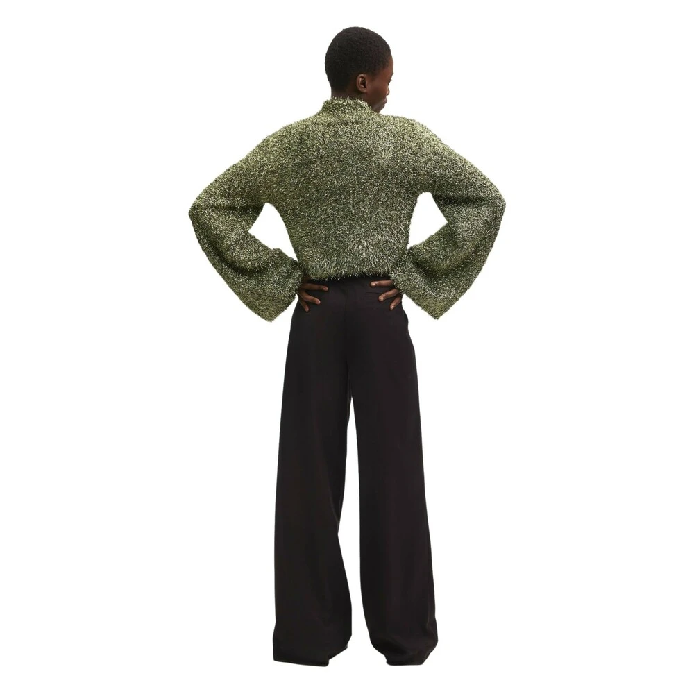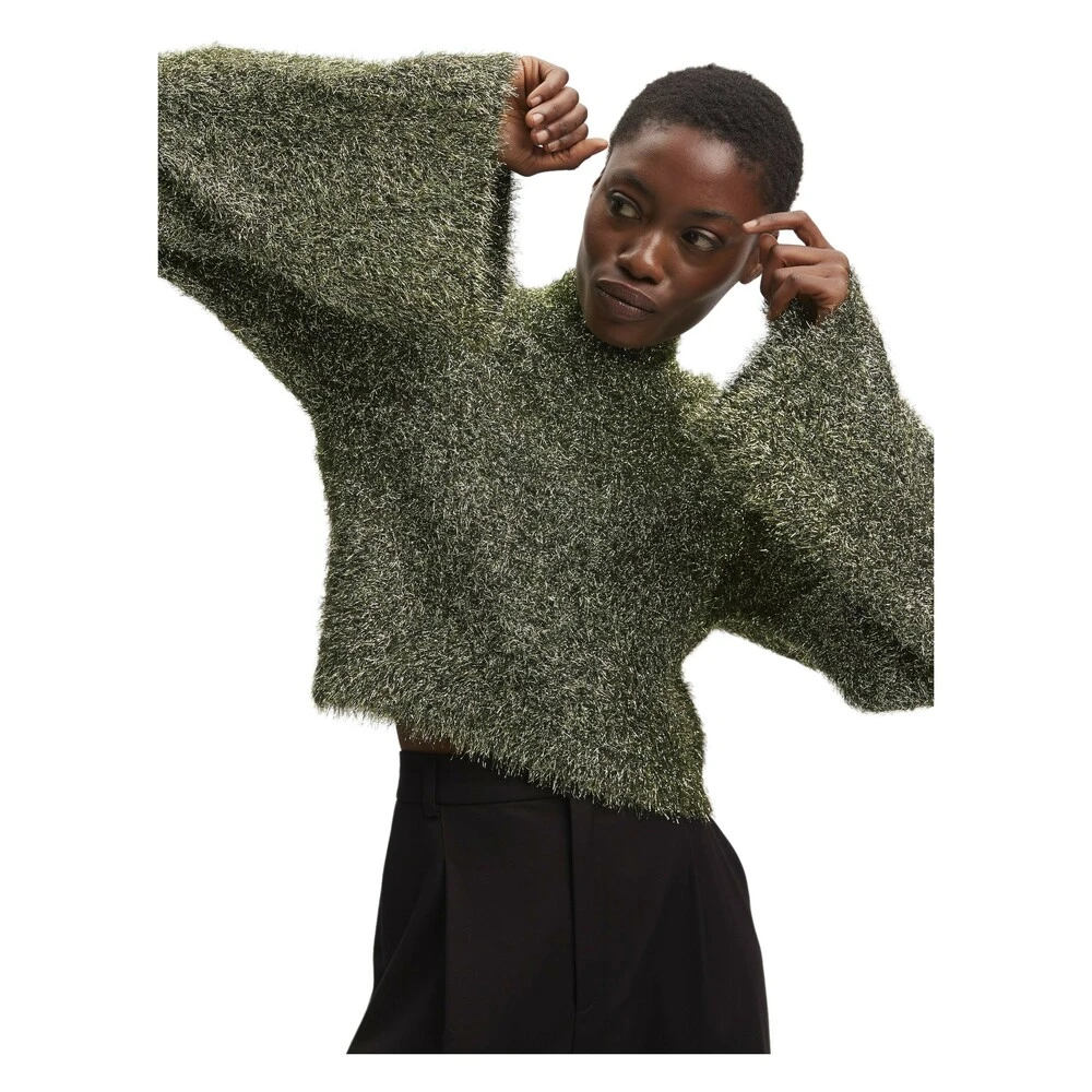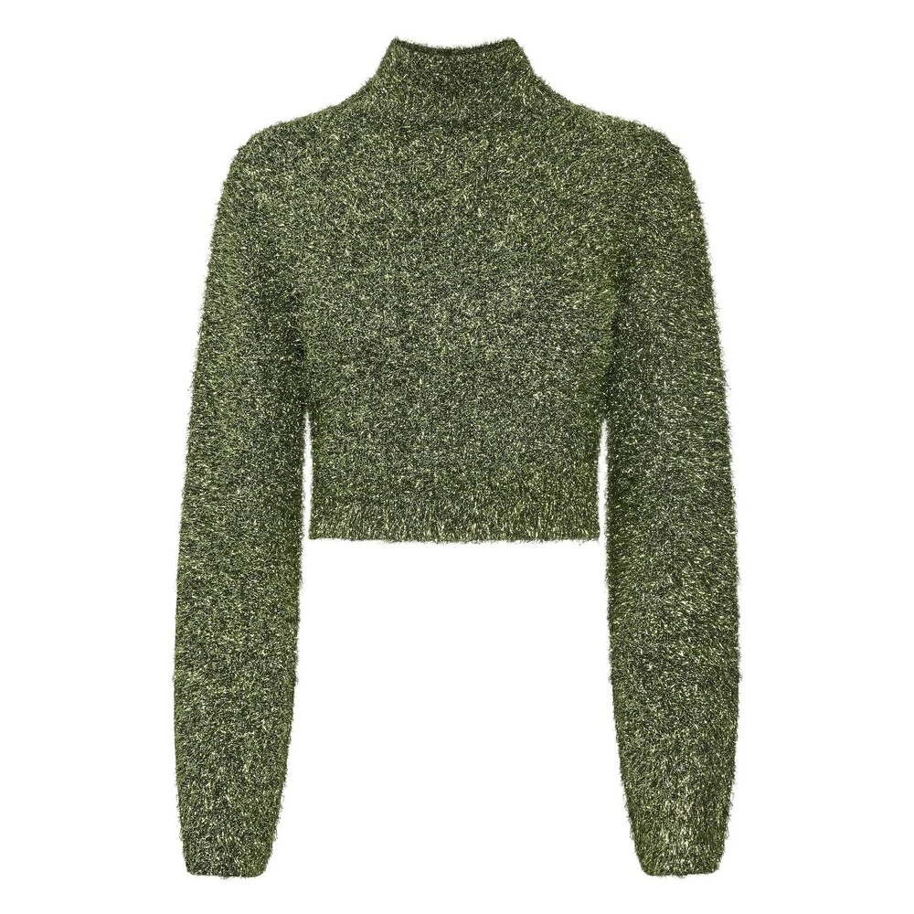 Showpiece alarm! Råkul, glitrende genser i grønn glitter! Ektsra lange ermer med utsving , avslappet passform og lengde som treffer i midjen. 100% polyester