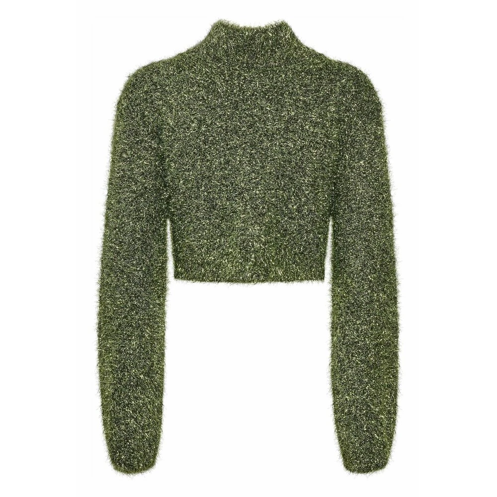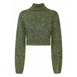 Dette glitrende nummeret presenterer en kul versjon av en klassisk genser. I fargen grønn glitter og med en unik tekstur. Med utsvingte armer og ekstra lange ermer, i en avslappet passform som treffer i midjen. Form: Regular fit Lengde: Kort Lengde: 41 cm tilsvarer XS Sammensetning : 100% Polyester