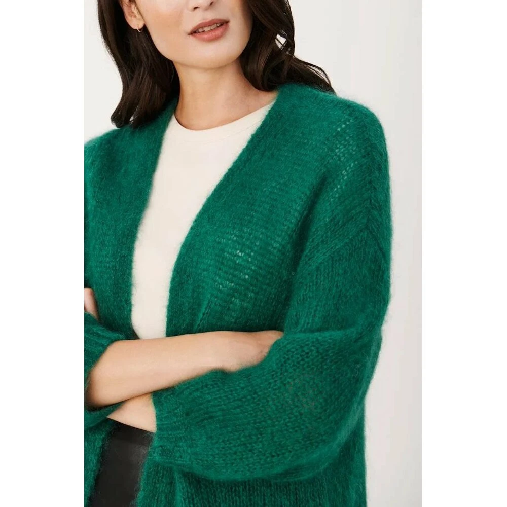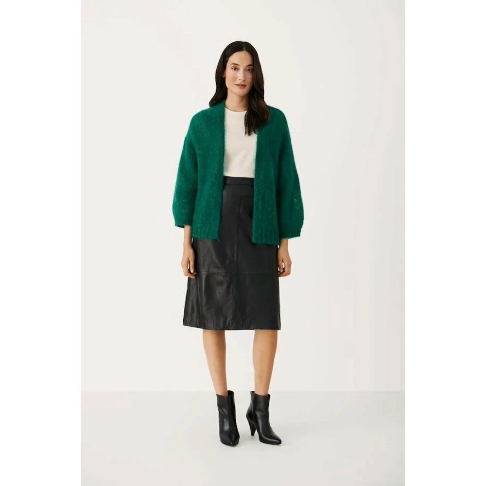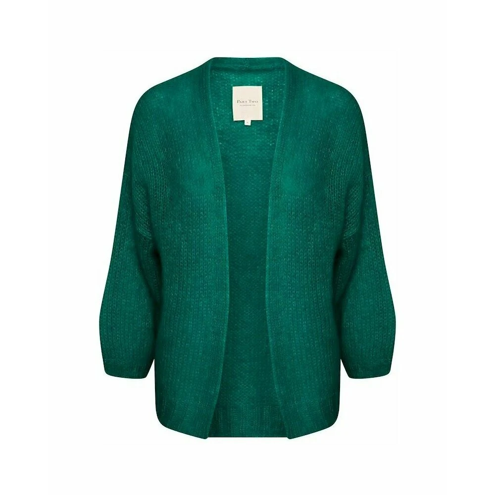Myk og delikat cardigan fra Part Two i en lekker evergreen farge. Relaxed fit med lange armer. 70% Mohair,18% Wool,12% Polyamide