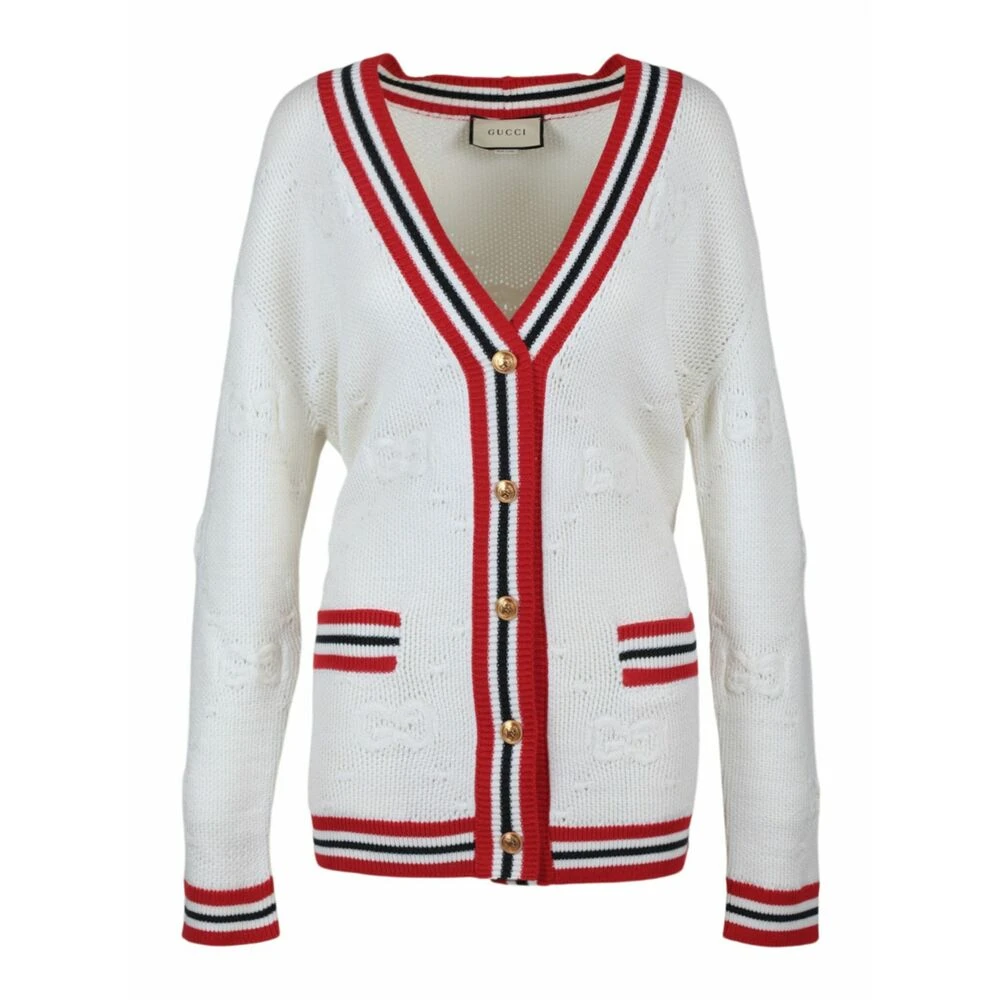 Frontknapplukking; 69% ull, 29% silke, 1% polyamid, 1% elastan; Lange ermer, to lommer foran, elastisk hem og mansjetter; Strikkede logoer, trimmet i rød-hvitt-navyblå stripe, Goldtone-knapper; ; Laget i Italia