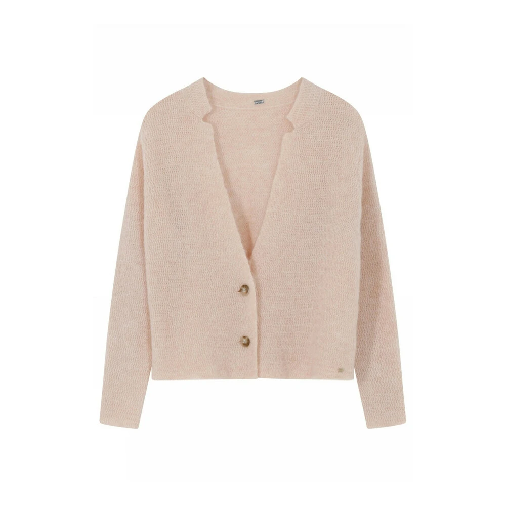 Nydelig kofta fra Gustav i en fin myk og lett strikk med lange ermer, dype V-hals og fine knapper å lukke med. · Fit: Lett løs -Fitting · Modell: Bera, strikket cardigan strikk 46414/3615 Beach Sand · Kvalitet: 42% ull, 28% mohair, 28% polyamid, 2% elastan