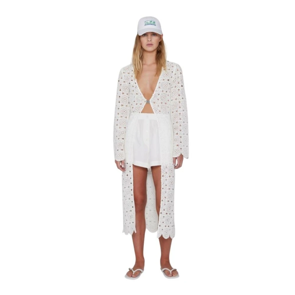 Meet ROTATE Sunday, their most responsible collection. The Kwamie Robe is a long beach cover up robe made in a crochet knit look. It has a logo closure and is cut at the calf. Details fit Crochet Logo detail R closure Fit: Regular Color: Bright White Composition: 100% Organic Cotton SKU: RT1384 The model is 174/5.5 ft. tall The model is wearing a size S