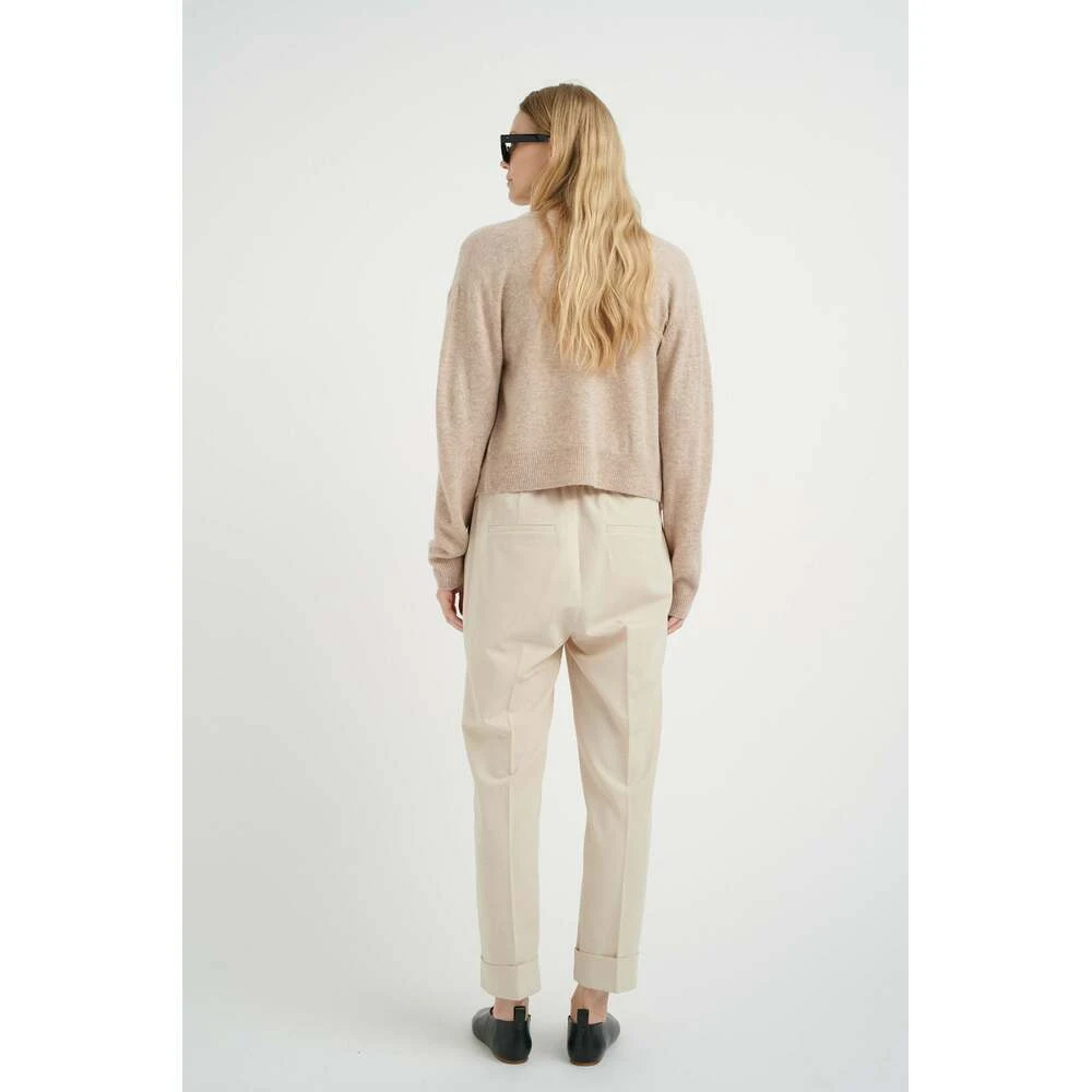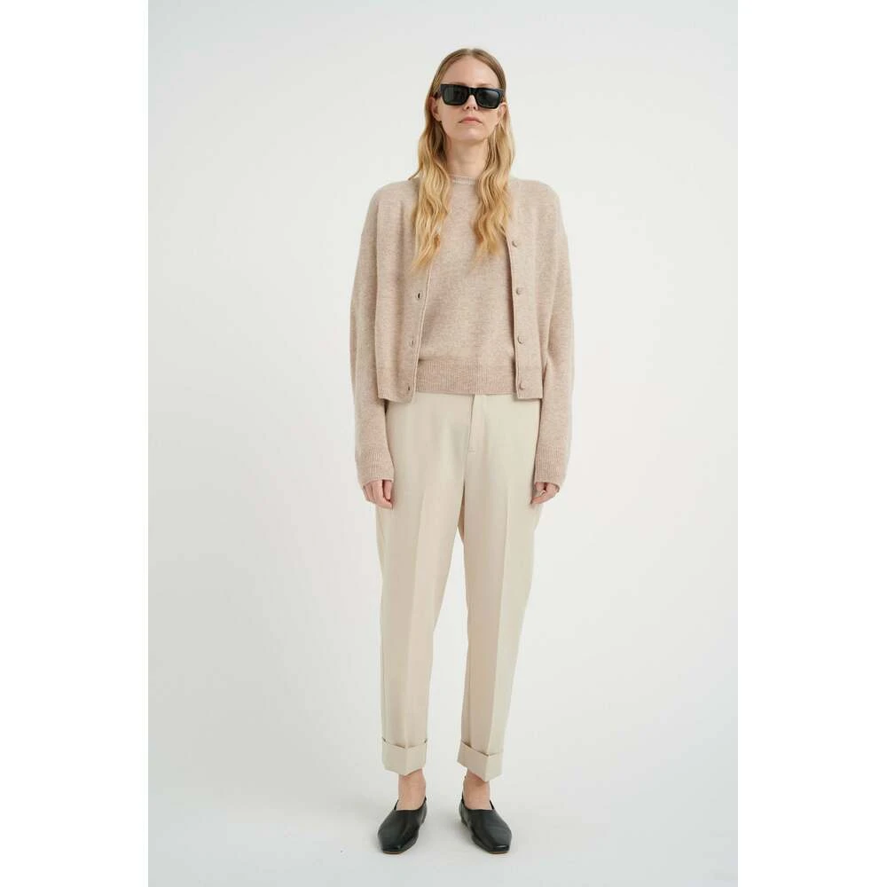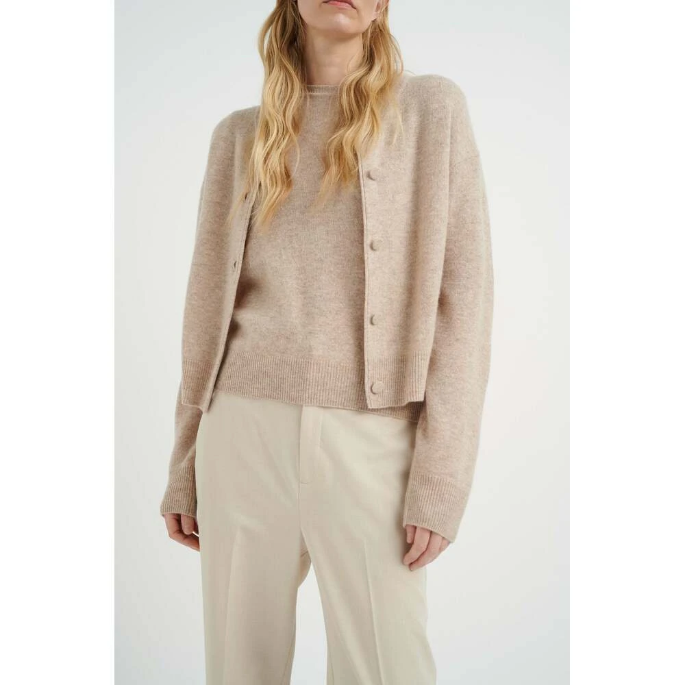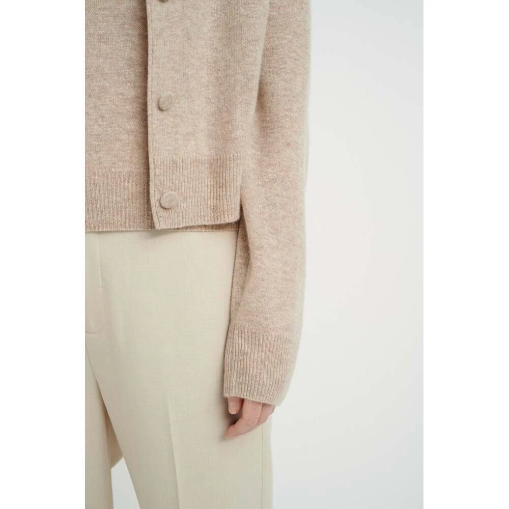 MonikaIW Cardigan fra InWear. Nydelig cardigan fra InWear i en myk og luksurøs ull- og kasjmirmiks som varmer godt på kalde dager. MonikaIW Cardigan har lange ermer med lav skuldersøm og en flatterende og feminin hoftelengde, som gjør cardiganen ideell å kombinere med dressbukser. Cardiganen har knappelukking i front, rund hals og ribbestrikkede mansjetter og fald. Den vakre lyse beigefargen er kledelig til alle, og gjør at cardiganen fungerer like godt i vinterhalvåret som på våren. Materiale: 90% ull, 10% kasjmir Om merket: InWear er et dansk merke som ble grunnlagt av Niels Martinsen i 1969. Helt fra start har merkets filosofi vært å skape en garderobe av plagg som gir kvinner frihet, komfort og en følelse av selvtillit. InWears skreddersøm er bygget rundt moderne minimalisme og de har stor tro på langvarige løsninger. For å sikre plagg som holder lenge gransker de hver eneste detalj før designene settes i produksjon. Den gode kvaliteten kombinert med en vellykket kombinasjon av urbanitet og femininitet har sørget for at merket er like aktuelle i dag, som de var for 50 år siden.