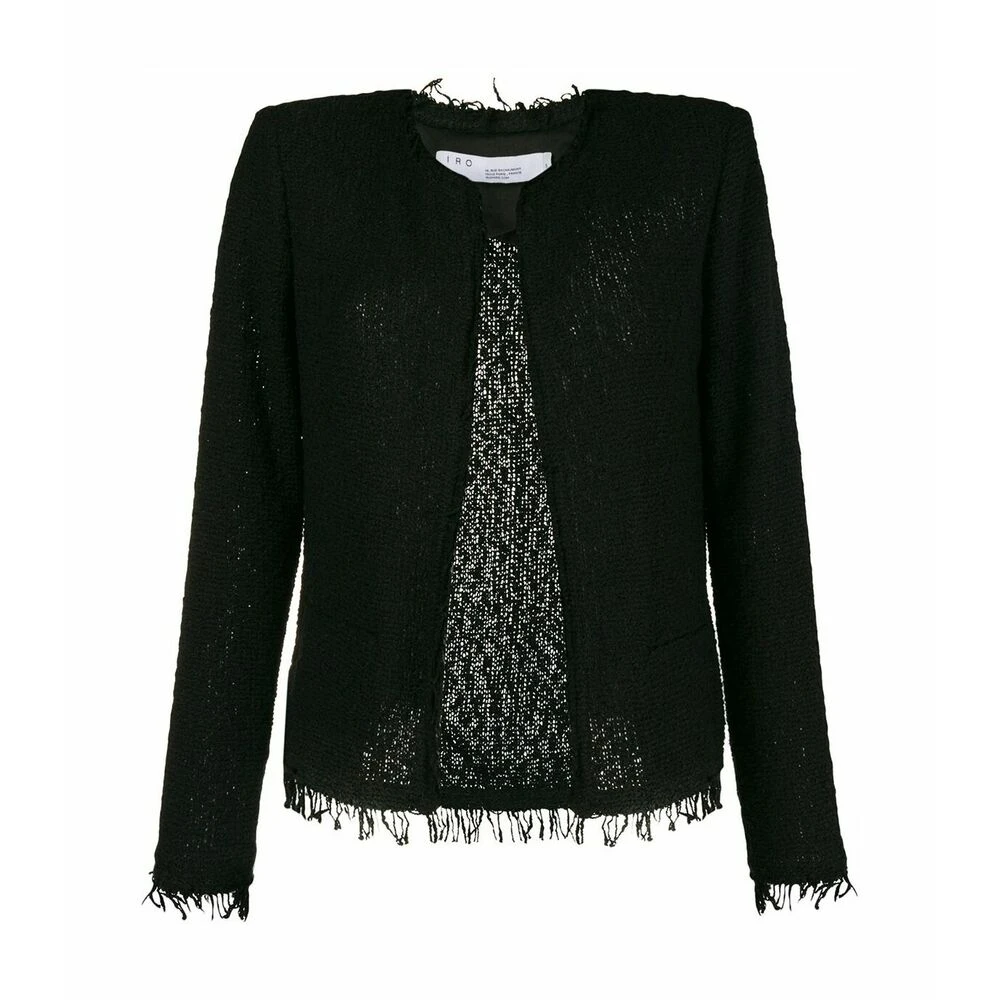 Svart cardigan fra Iro. Denne stilen er konstruert av strukturert bomull som kan skryte av rå kuttede, frynsete kanter, og har en åpen front.