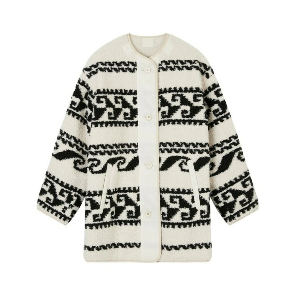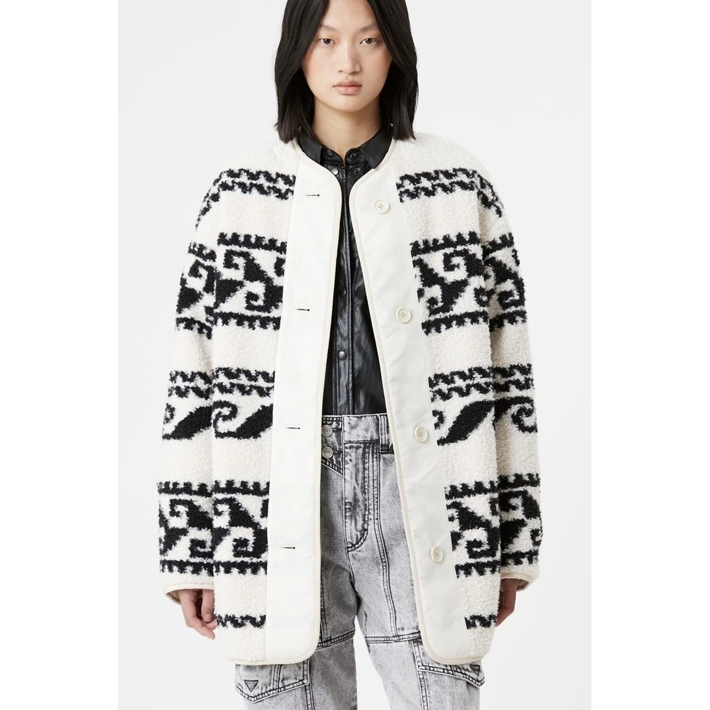 Isabel Marant, Étoiles Himemma-jakke er en vendbar design i en oversized silhuett. Den ene siden er laget av plysj imitert shearling i et dekorativt mønster, mens den andre kommer i et enkelt beige skall. Med splitlommer, knapp foran og oversized passform. Detaljer: Materiale: 100% polyester Materiale II: 100% bomull Vedlikeholdsråd: maskinvask på 30 grader ______________________________________________________________________________ Isabel Marant, Étoile Himemma jacket is a reversible design in an oversized silhouette. One side is made from plush faux shearling in a decorative pattern, while the other comes in plain beige shell. Featuring slit pockets, a buttoned front and an oversized fit. Details: Material: 100% polyester Material II: 100% cotton Care instructions: machine wash at 30 degrees