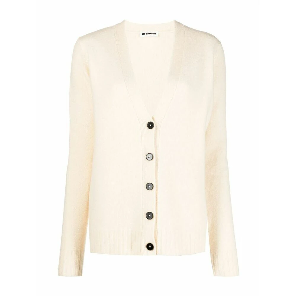 Jil Sander gensere beige knapp ned strikket cardigan fra Jil Sander med krem, ull, strikket konstruksjon, V-hals, lange ermer og knappfesting.