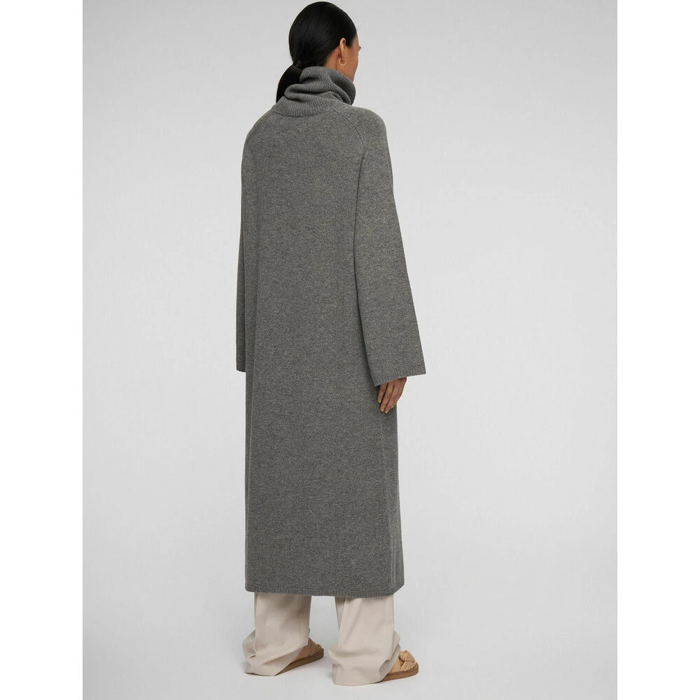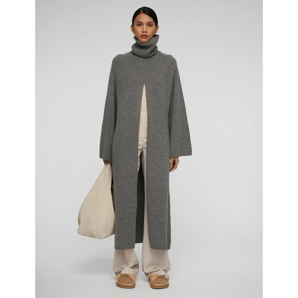 Oversize Knit Viviane dress fra Joseph er ett unikt plagg som kan styles på en rekke ulike måter. Kjolen har røy hals og vide ermer med en liten ribbestrikket kant. Viviane dress har også en lang splitt i front som skaper en slags coat-effekt. Bruk den over en t-shirt og en vid bukse for en elegant men hverdagslig look. Detaljer: Material: 100% merino ull Noe stor i størrelsen Modellen er 181cm høy og bruker størrelse 38, M Håndvask anbefales ________________________________________________________________________________________________________ The Oversize Knit Viviane Dress from Joseph is a relaxed fit style crafted from extra fine merino wool. Elongating the silhouette, this knit dress features a split-front with small rib finishing at the collar, cuffs and hem.Style over wide leg trousers for a effortless day look. Details: Quality: 100% merino wool Consider a smaller size Model is 181cm tall and wears size 38, M Handwash is recommended