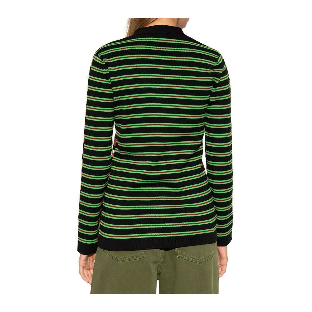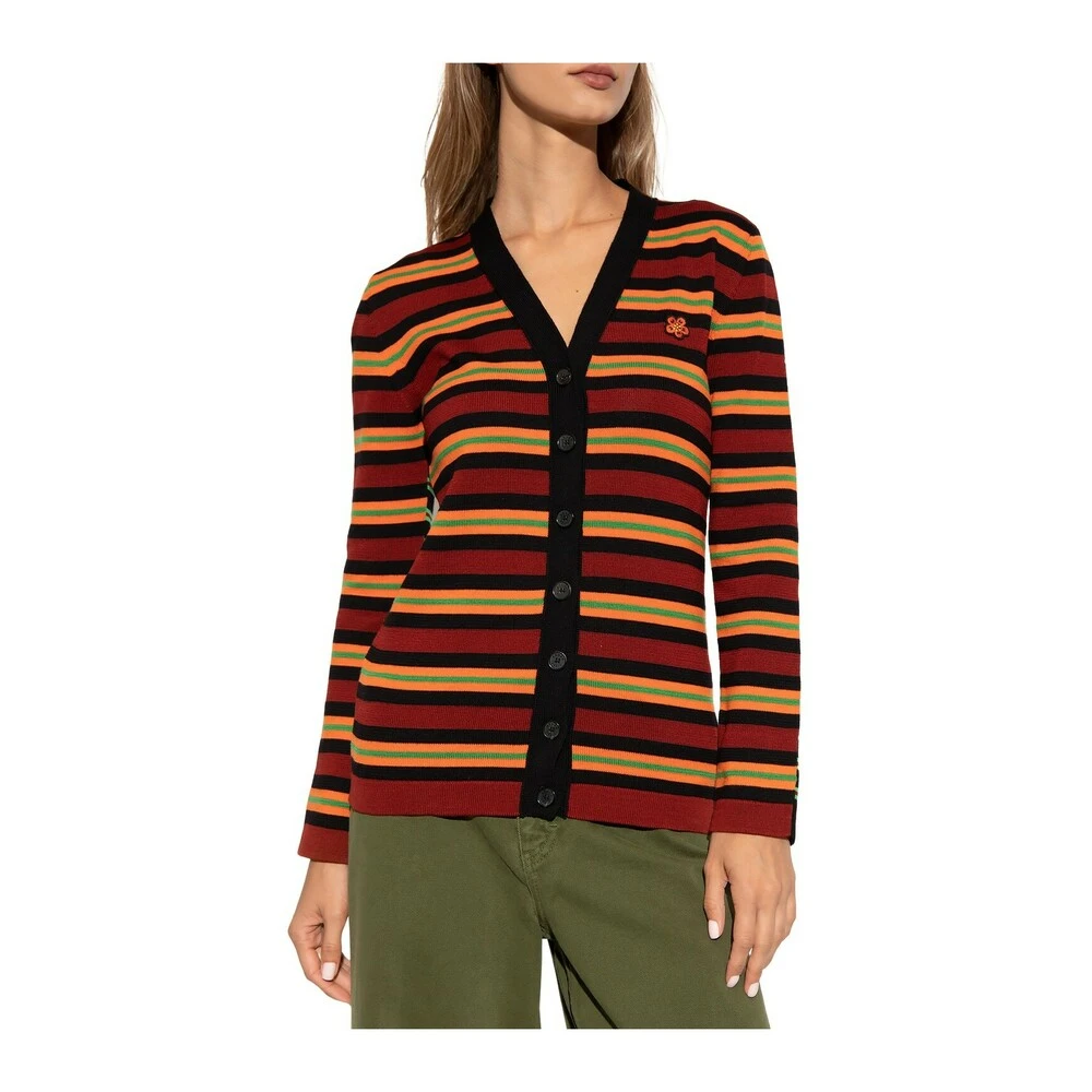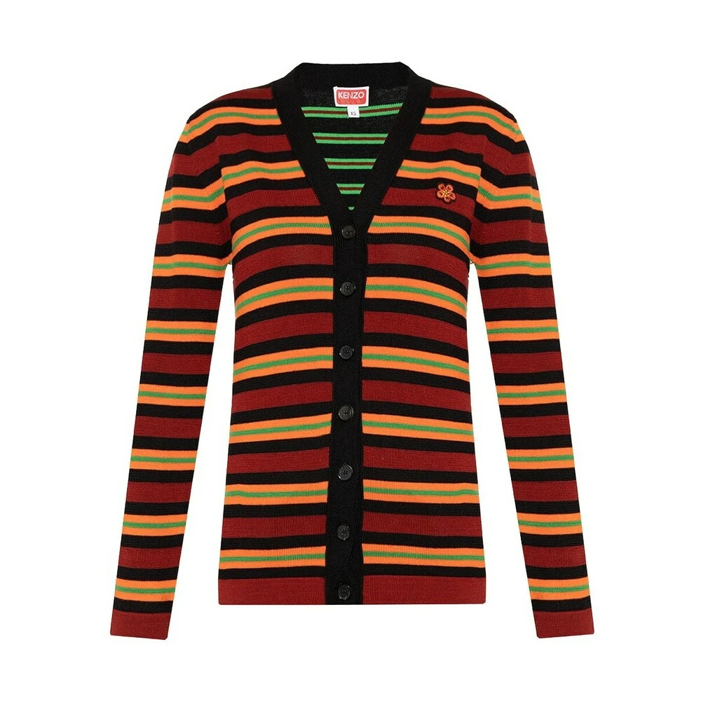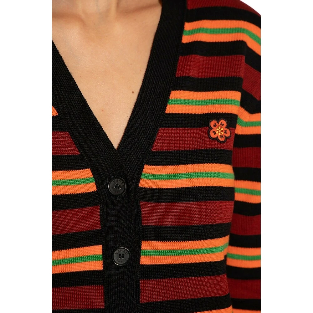 Flerfarget cardigan fra Kenzo. Dette plagget er laget av en ull- og bomullsblanding, og har knippfestene, stripemønsteret, flerfarget lapp med Boke Flower Motiv og ribbestrikkede trimmer ved V-halsen, hem og mansjetter.