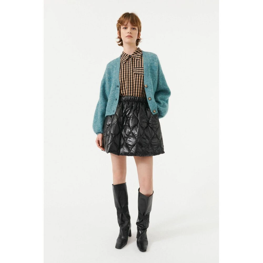 Cardigan med tre knapper i front. Myk, cropped og med lett effekt av ballongermer. 32% Alpakka 32% Merinoull 30% Polyamid 6% Elastan