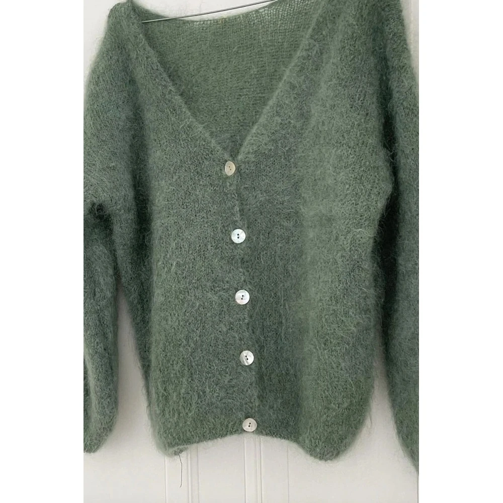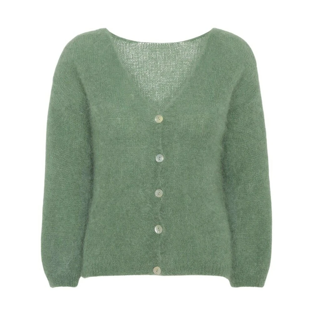 American Dreams – Cornelia LS Cardigan Cardigan i et fint tynt mohair strikkemateriale med button-down detaljer. Denne modellen brukes på flere måter med knapper foran eller bak med dypt V-snitt. 78% Mohair 18% Polyamid 4% Ull Håndvask kun i kaldt vann med ullvaskemiddel. Må ikke tørkes i tørketrommel. Legg flatt til tørk.