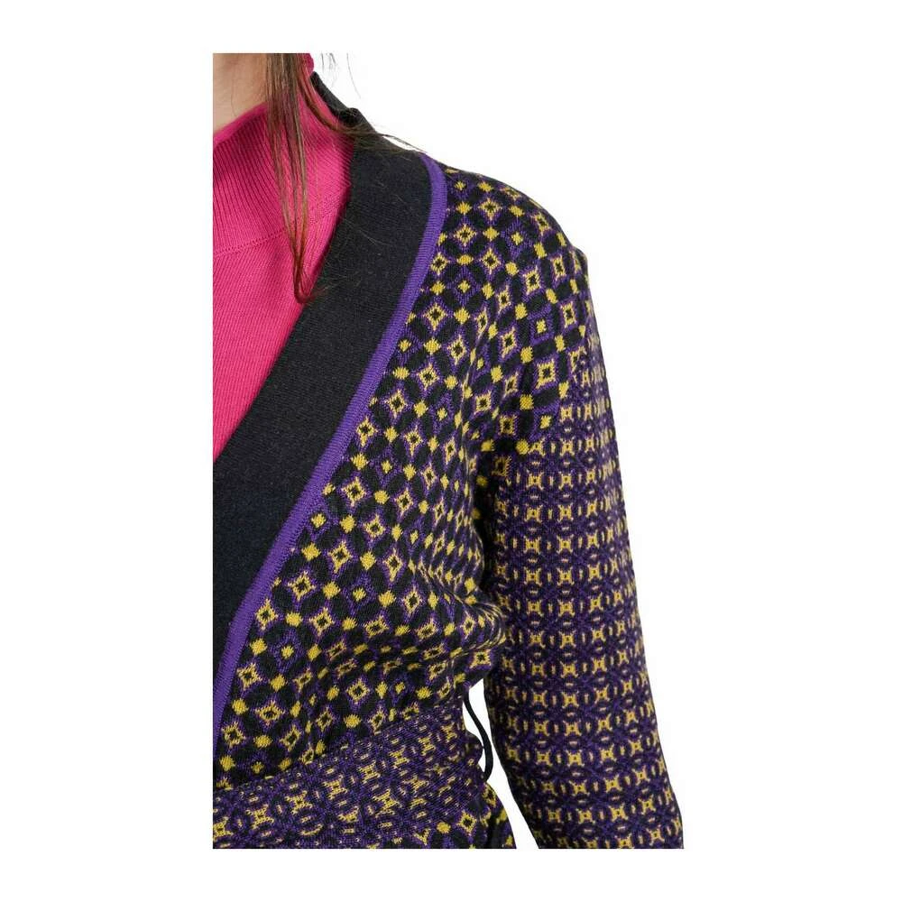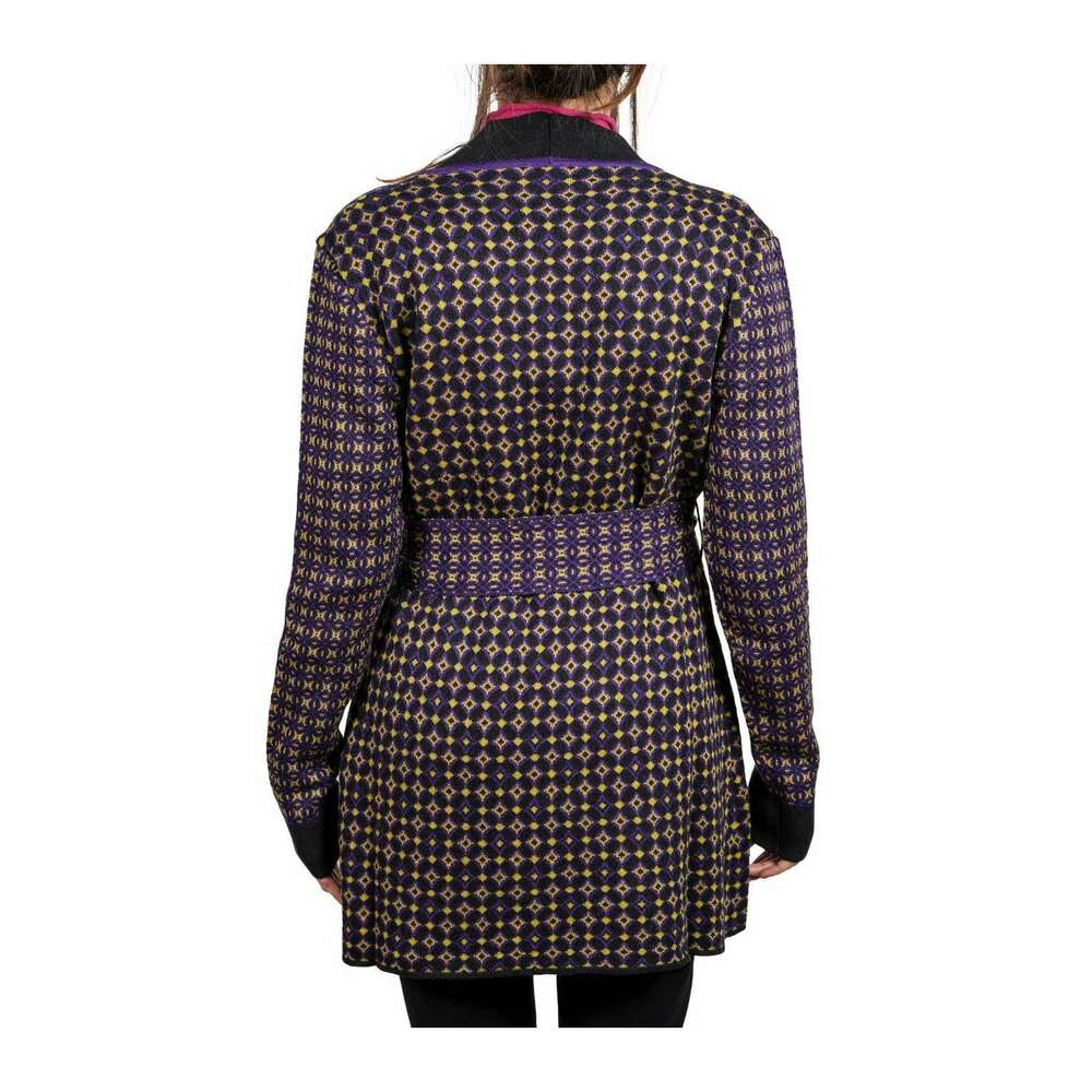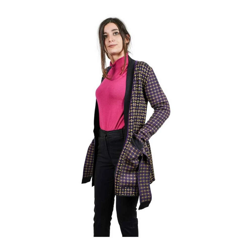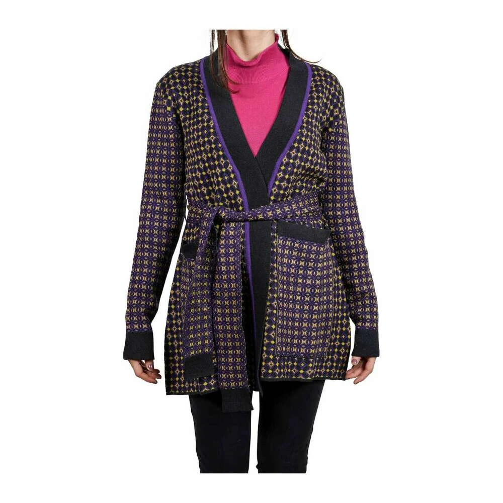 MANILA GRACE Gensere Cardigan, ull- og bomullsblanding, geometrisk mønster, V-hals, lange ermer med mansjetter, med belte, to frontlommer, ingen applikasjoner.