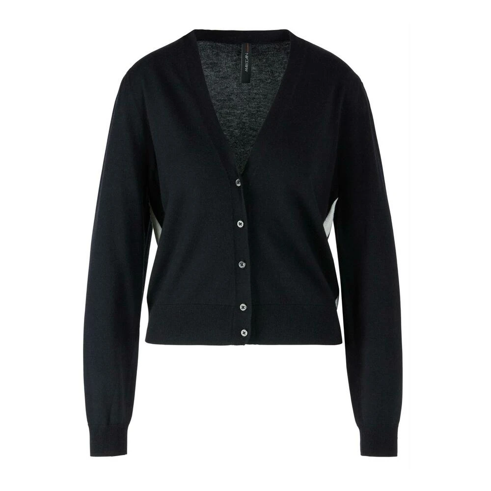 Denne kofta av en fin trøye skiller seg ut på grunn av fasjonable kontraststriper på sidene. De store skuldrene med rynkete detaljer gir kvinnelige aksenter. Cardigan er laget av en fin kupongblanding med viskose og kashmir.