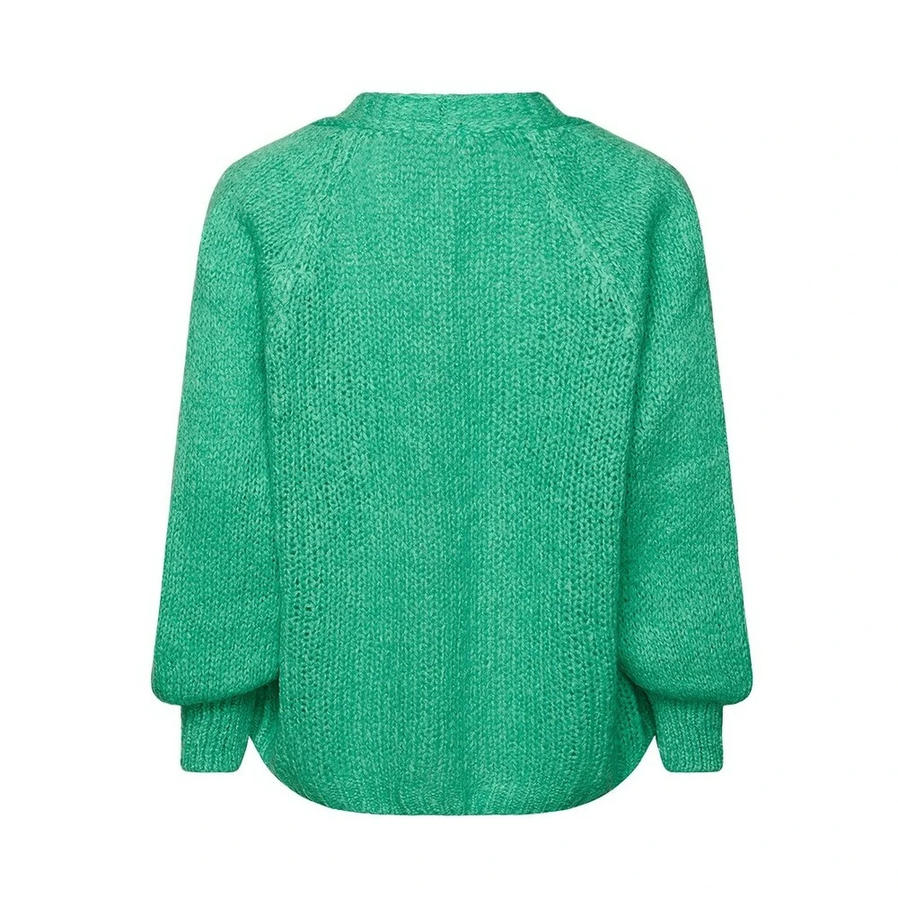 Laget av 58% acrilicc, 20% lana wool, 12%nylon og 10% mohair.