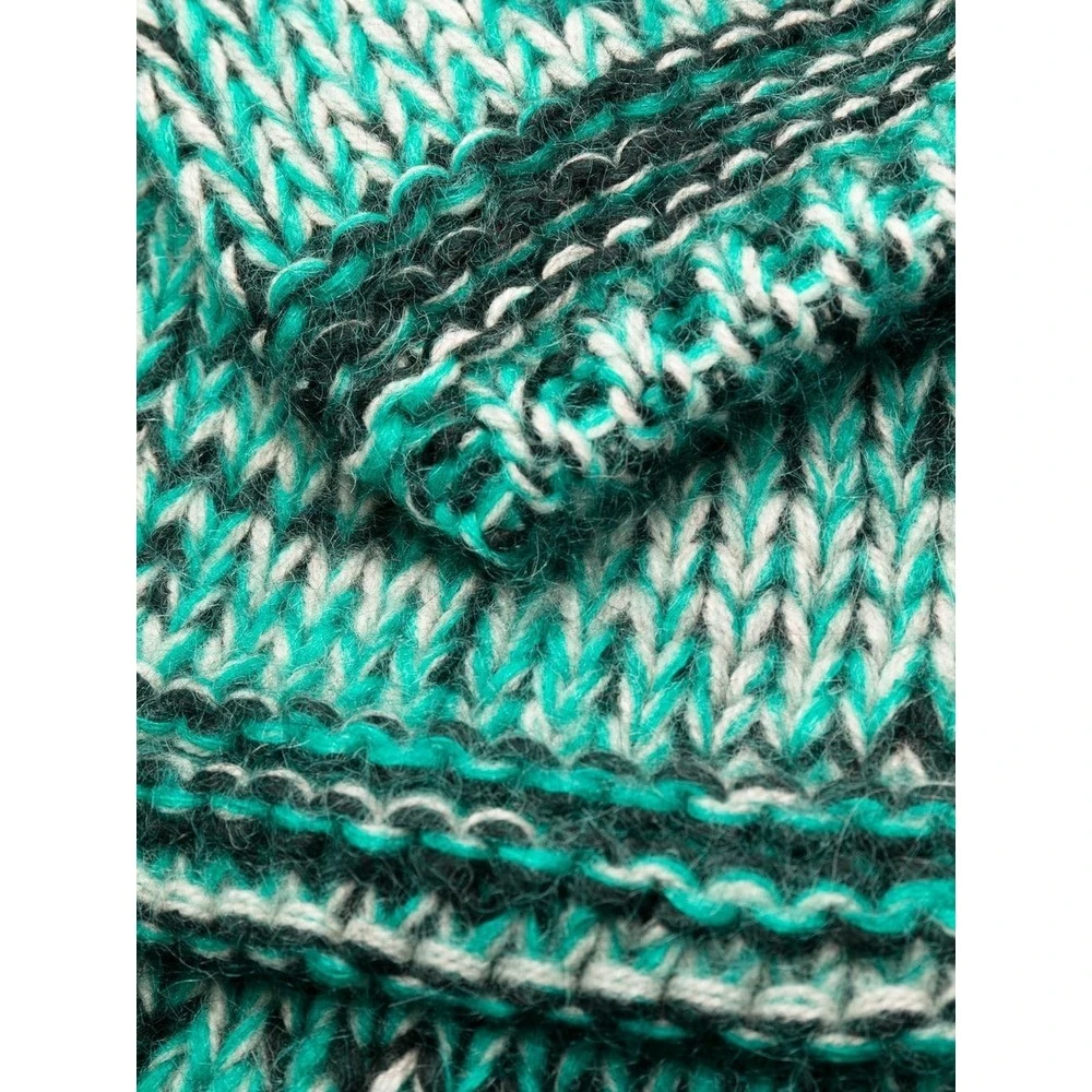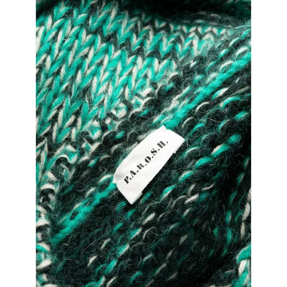 Parosh strøk rød marl-strikket kardi-belegg fra P.A.R.O.S.H. Med turkis blågrønn, mohair-ullblanding, marlstrikk, rund hals, skjult frontknappfesting, lange ermer og to lommer foran.