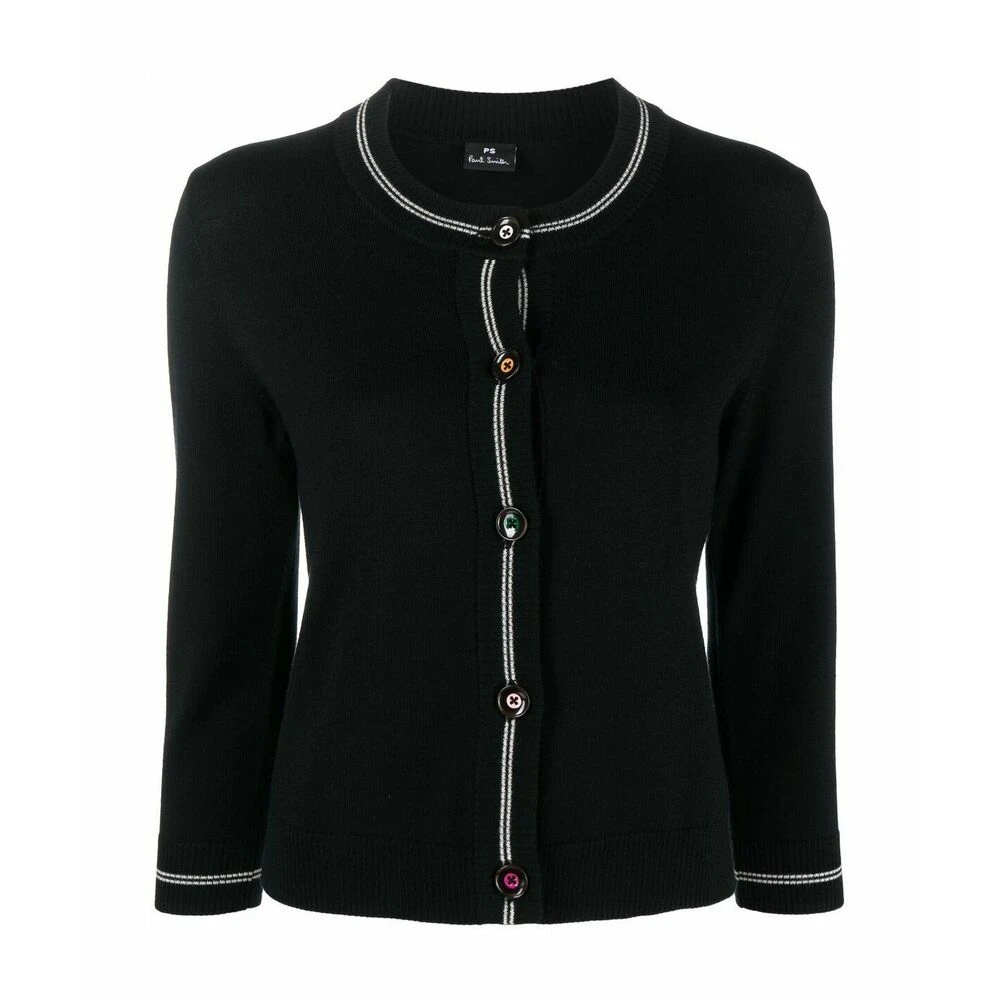 PS av Paul Smith Gensere svart ribbet avstrikket ull cardigan fra PS Paul Smith med ribbet strikk, frontknappfesting, rund hals, lange ermer, rett hem, svart og ull.