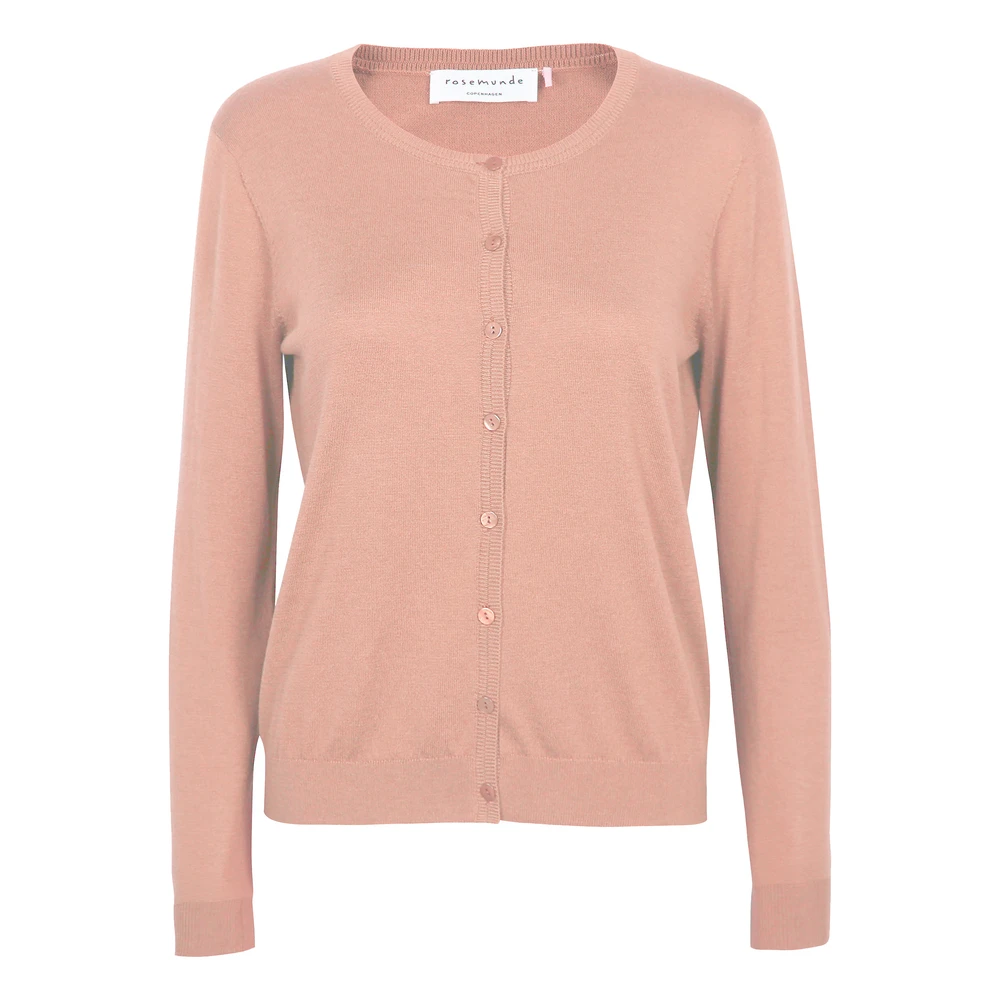 "Rosalia" cardigan fra Rosemunde i myk og komfortabel kvalitet. Den rosa fargen er en fin match til b�de marinebl�, sort og andre farger, og plagget er perfekt til kj�lige sommerkvelder. Detaljer: Rund hals og stolpe med knapper. Ribbestrikk i kantene. Farge: Lys rosa med rosa knapper. Passform og st�rrelse: Smal passform med litt kort lengde. Normal i st�rrelsen. Sammensetning: 40% lyocell, 30% silke, 30% resirkulert polyester. Pleie: H�ndvask eller maskinvask med ullprogram p� maks 30 grader, og med sk�nsomt vaskemiddel.