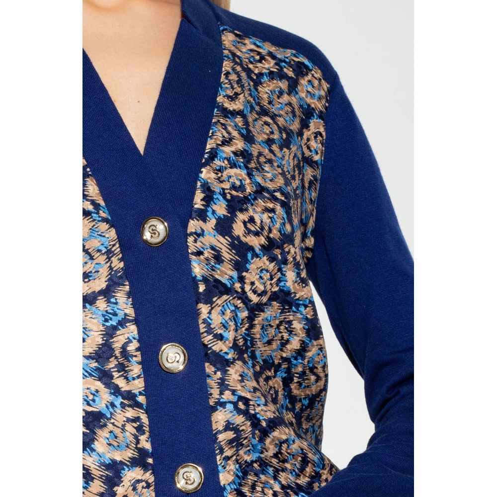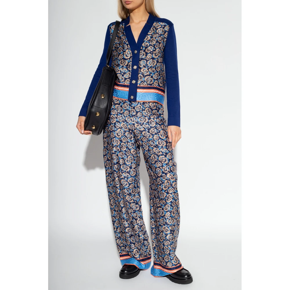 Flerfarget cardigan fra Salvatore Ferragamo. Denne stilen er laget av en bomulls- og silkeblanding og viser merkets signatur Gancini -mønster. Den er komplett med en V-pengelinje med splitter, merkevare-gull-tone-knapp og lange ermer.