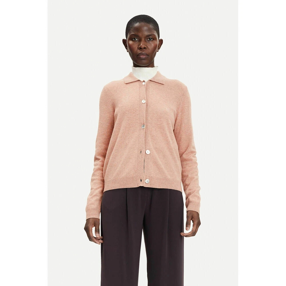 Nydelig cardigan med krage. Ribbet mansjetter og kant, fullt mote sømmer. RWS-sertifisert. Baklengde på størrelse liten er 56 cm.