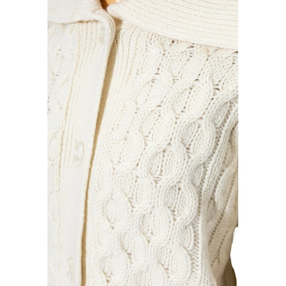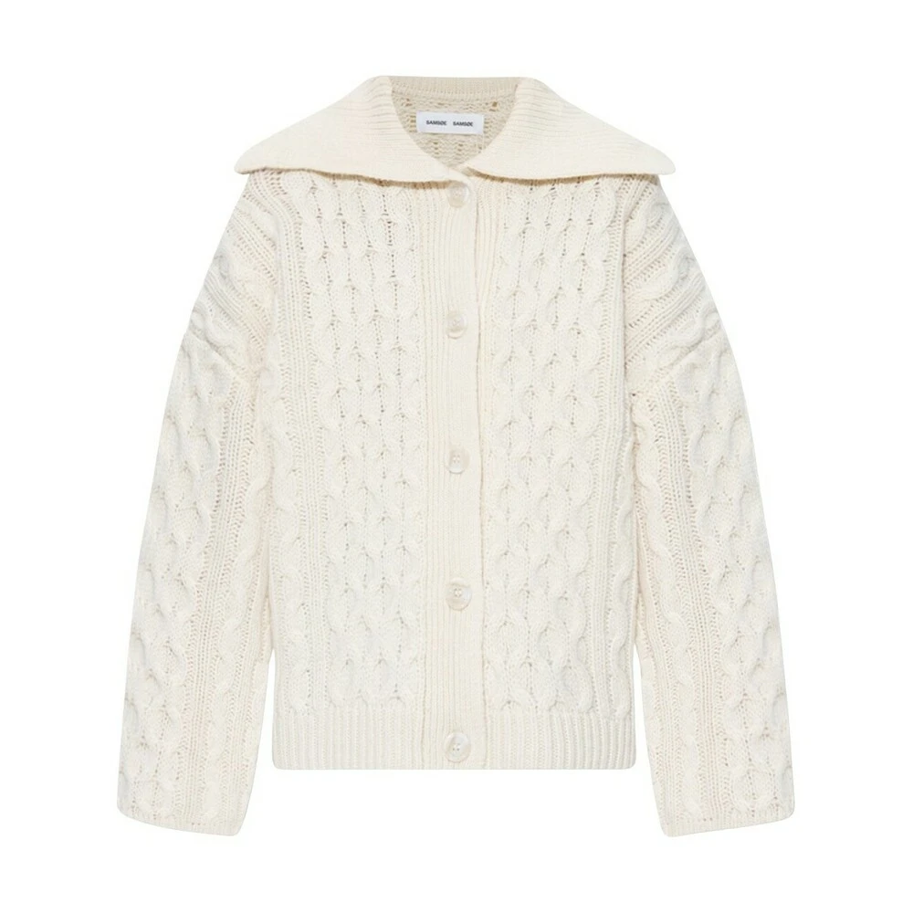 Krem ‘kaya’ cardigan fra Samsoe Samsoe. Denne varen er laget av ull med ribbet strikket, og har en avslappet silhuett, en krage, knappfester og lange ermer.
