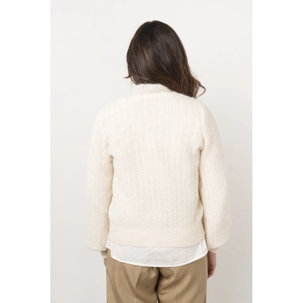 Vest fra andre kvinne. Denne vesten i ECRU har en knappavslutning foran og lange puffede ermer med brett. Vesten har en kort, tilkoblet modell. Unik mote bruker nederlandske dimensjoner. Størrelsene på skandinaviske og tyske merkevarer er de samme som nederlandske dimensjoner. Mål: NL XS (34), S (36), M (38), L (40), 42 (XL) Materiale: 35% mohair, 35% alpakka, 30% polyamidepasform: Dette elementet har en tilkoblet passform.