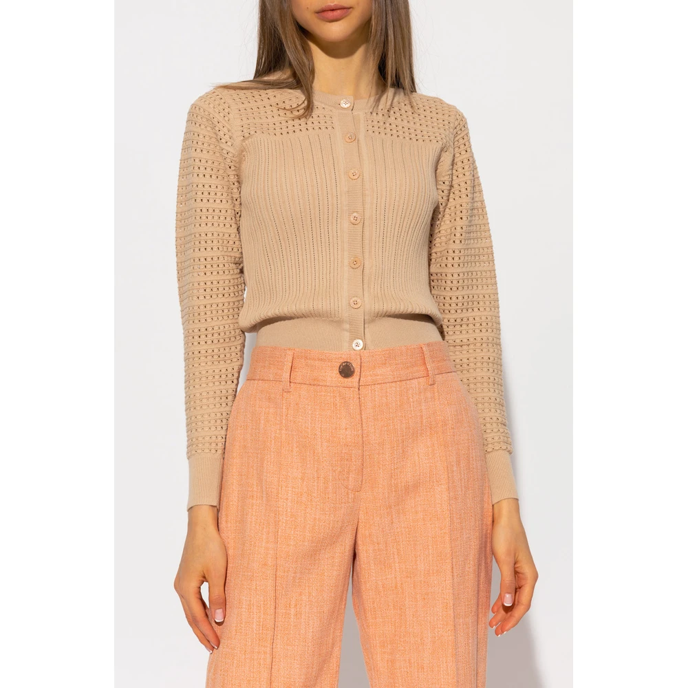 Lett beige cardigan fra se av Chloé. Dette plagget er laget av bomull, og har knappfester, dekorative strikk og ribbestrikk i mannskapets nakke, hem og mansjetter.