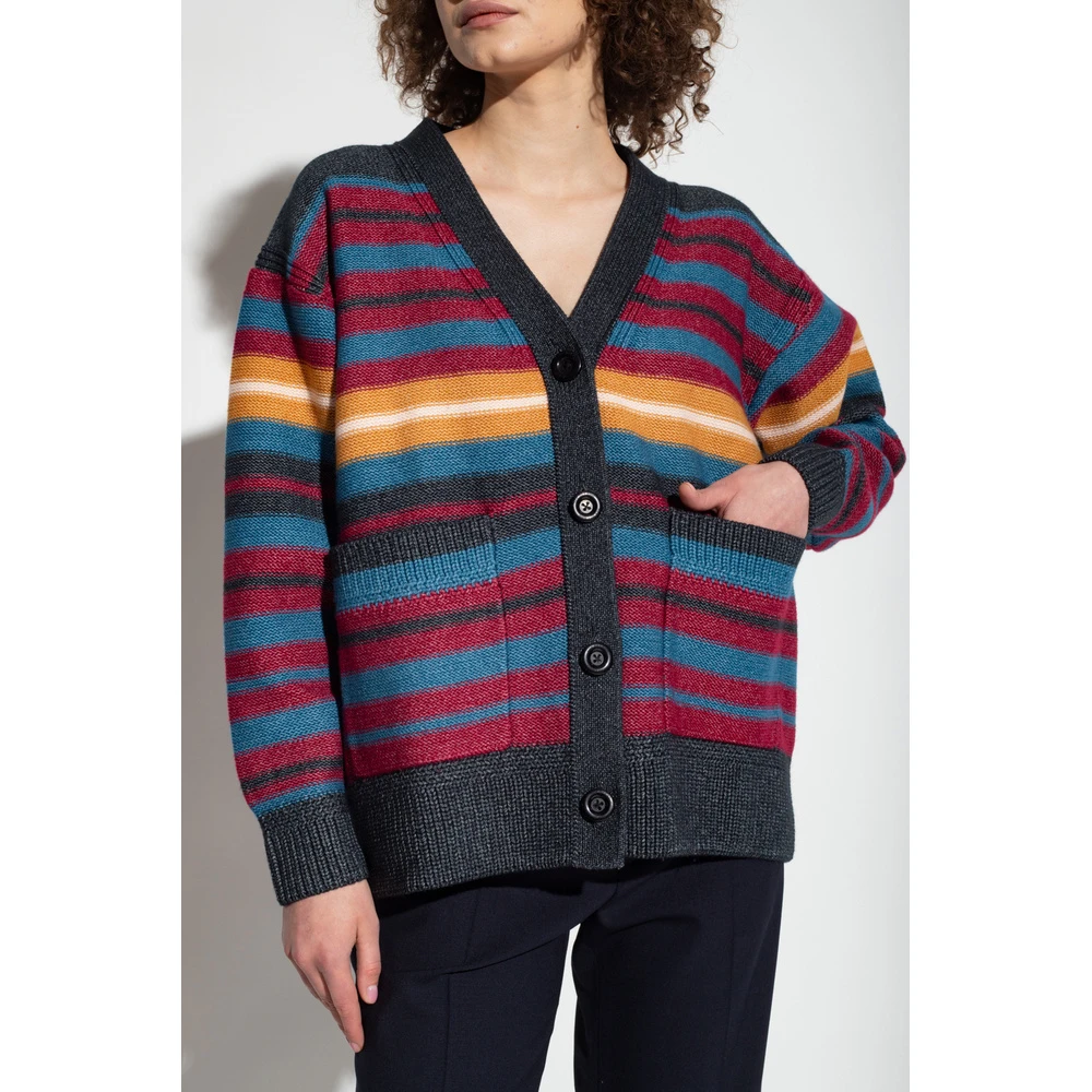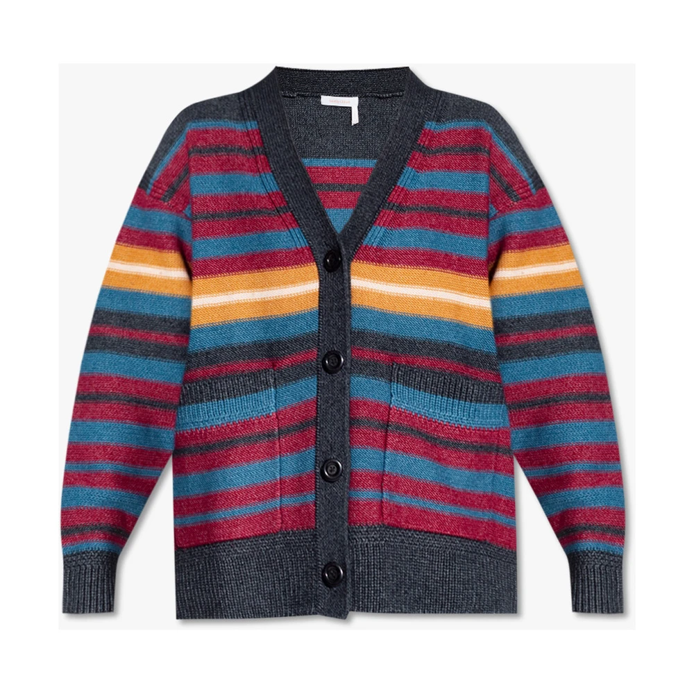 Flerfarget cardigan fra See av Chloe. Denne stilen er laget i en ribbet strikket design, og har en V-leckline, knappfester, to frontlommer og lange ermer.
