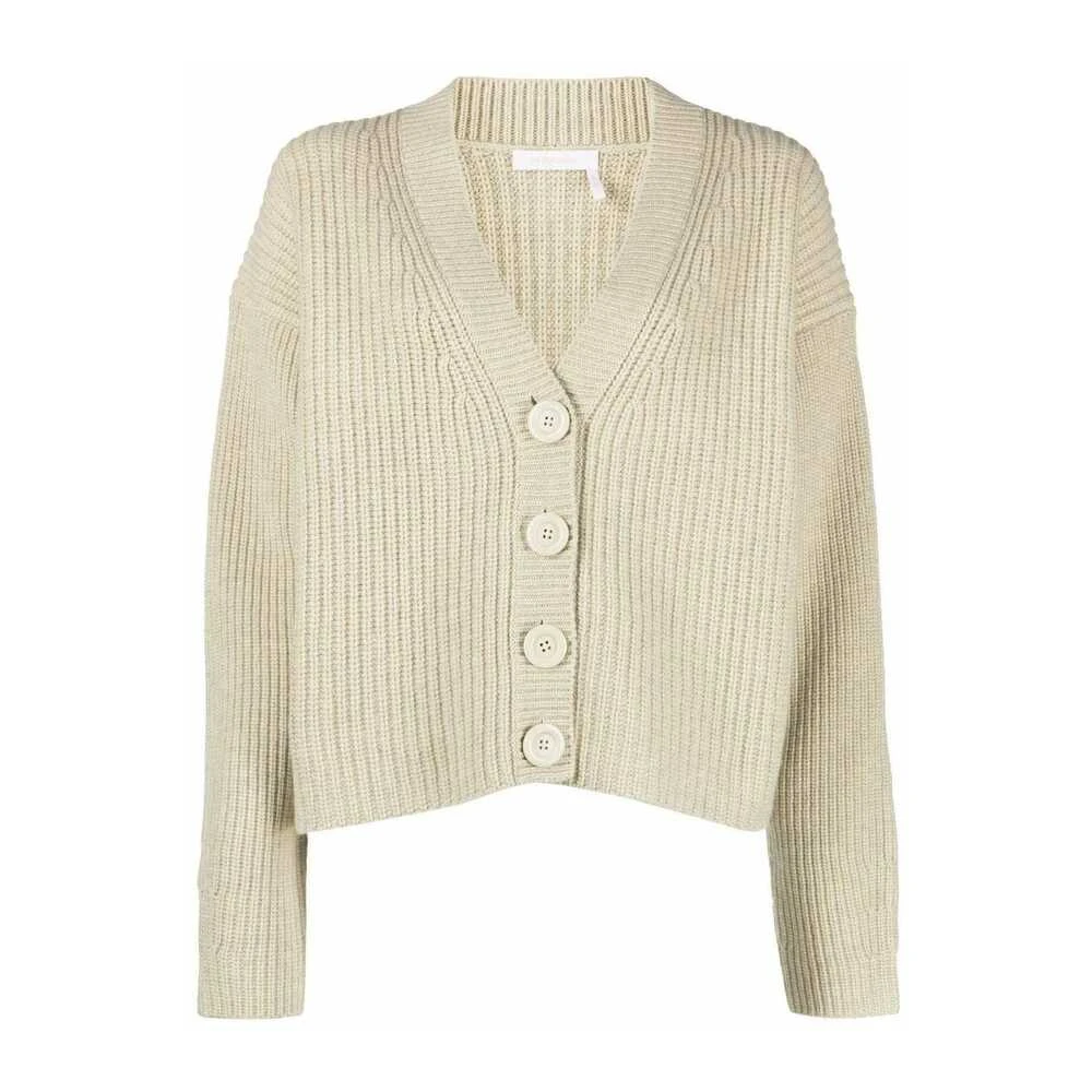 Se av Chloé-gensere ribbet strikket cardigan fra se av Chloé med kremhvit, ullblanding, ribbet strikk, V-hals, festing foran og lange ermer.