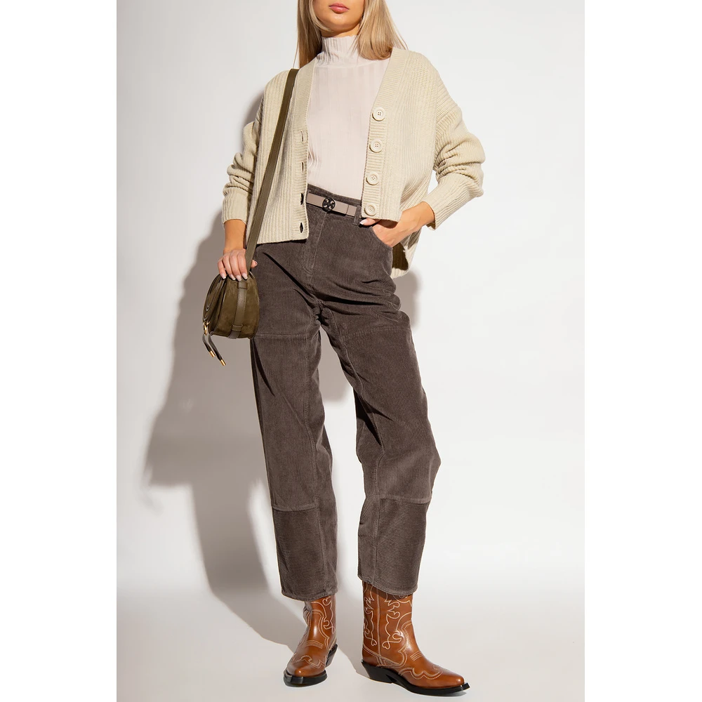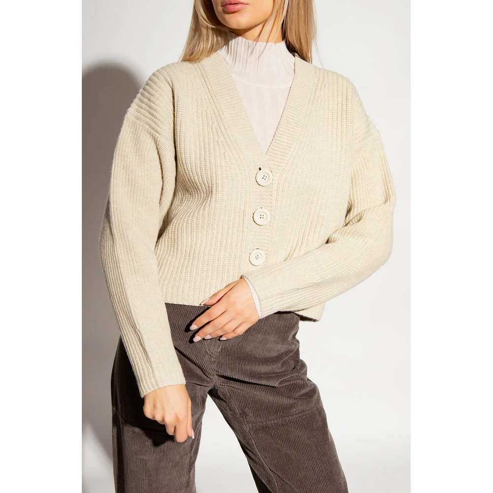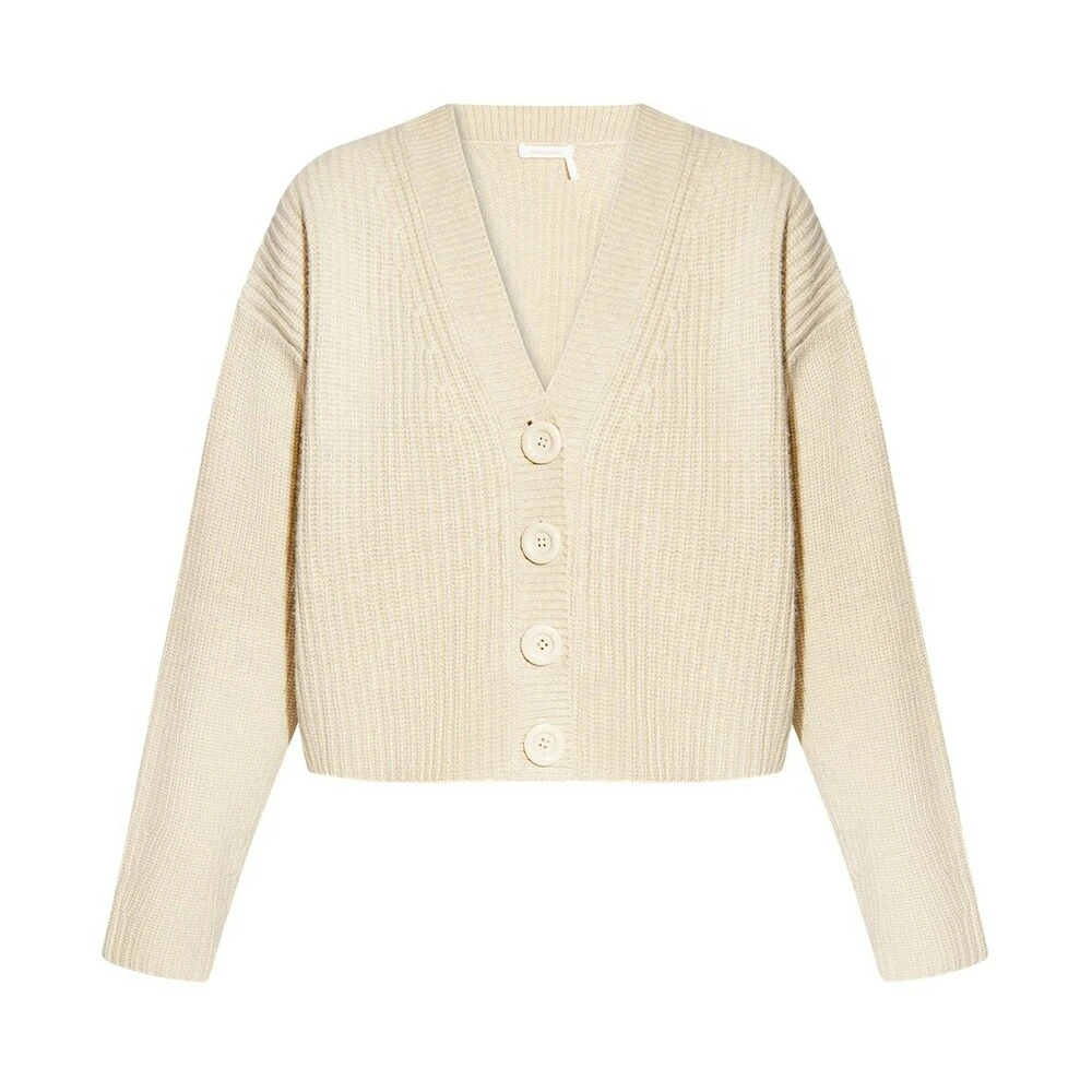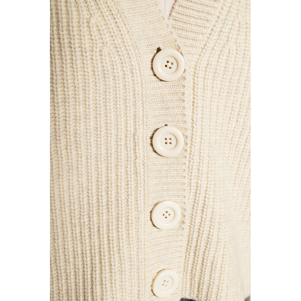 Kremkardift fra se av Chloé. Denne stilen er laget av en ullblanding med en ribbet strikk, og har en avslappet silhuett, en elastisk V-hals, knappfester og lange ermer.