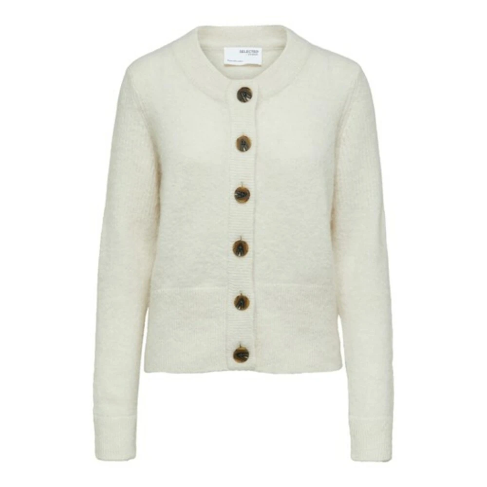 Sia ls knit cardigan fra Selected Femme, Sia ls knit cardigan fra Selected er en deilig myk strikket jakke med knapper og rund hals. Sia cardigan er en smal modell og oppfattes som normal på str. Farge : Krem Sia ls knit cardigan er laget av 43% ull, 30% Alpakka, 23% Nylon, 4% elastan