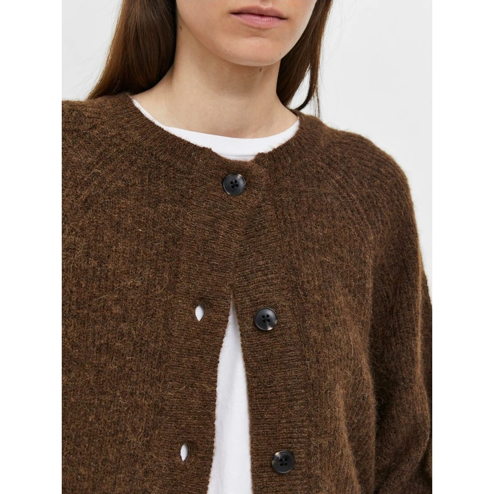 Super deilig strikket cardigan fra utvalgte femme i en nydelig brun smelete farge. Strikket er med rund hals, raglan ermer og ribbe i midjen og i ermene. En veldig enkel cardigan som er perfekt utenfor kjolen fordi den ikke er så lang. Stil: lulu ls kort strikket cardigan karaffel melange materiale: 39% ull, 24% polyester, 20% alpakka, 15% nylondimensjoner: lengde 58cm / bryst 104cm i størrelse XS Fit: Normal i størrelse Vaskeinstruksjoner: Vasket kaldt på ullprogram og og ligge tørr.
