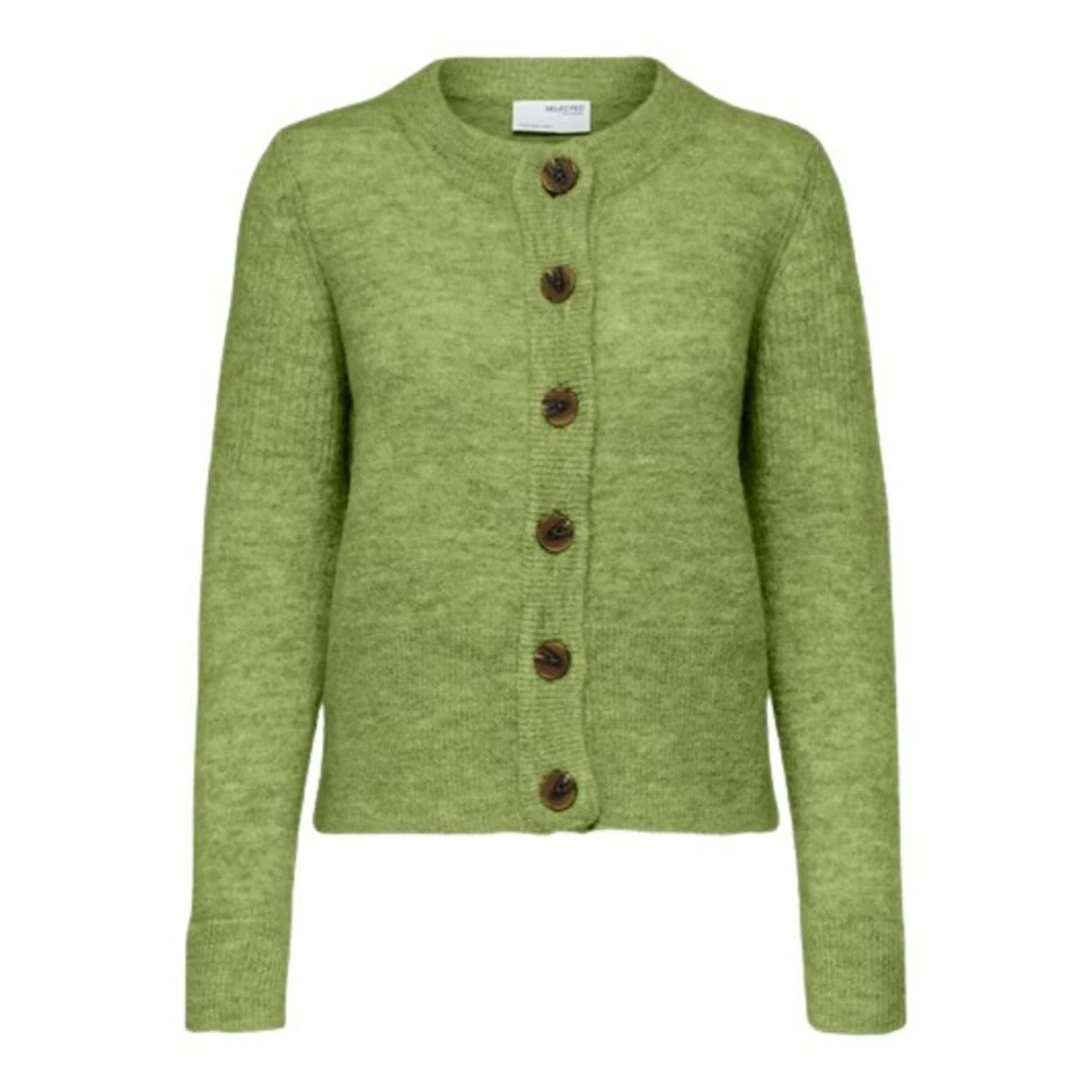 Sia ls knit cardigan fra Selected Femme, Sia ls knit cardigan fra Selected er en deilig myk strikket jakke med knapper og rund hals. Sia cardigan er en smal modell og oppfattes som normal på str. Farge : Grønn Sia ls knit cardigan er laget av 43% ull, 30% Alpakka, 23% Nylon, 4% elastan