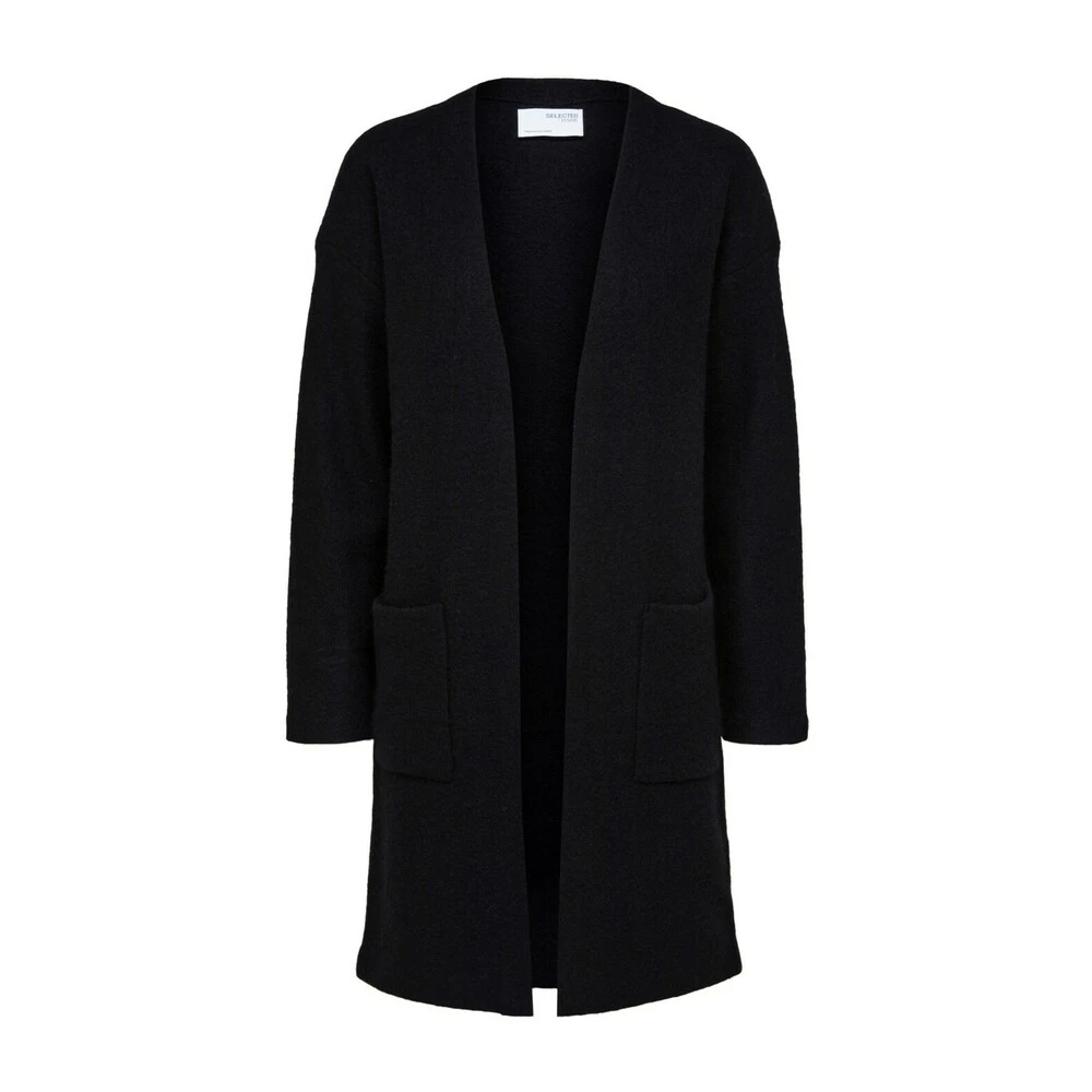 Darla ls knit cardigan fra Selected Femme, Darla ls knit cardigan fra Selected Femme er deilig og myk med en pen v-skjæring, uten knapper med to lommer foran. Farge : Sort Darla ls knit cardigan er laget av 100 % kokt ull